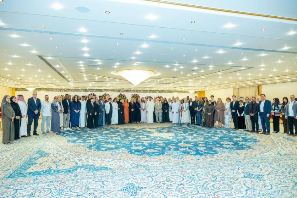 حضر الاستقبال، الشيخ أحمد بن سعود بن صقر القاسمي، رئيس دائرة الخدمات العامة في رأس الخيمة، والشيخ خالد بن سعود بن صقر القاسمي، نائب رئيس مجلس إدارة مكتب الاستثمار والتطوير في رأس الخيمة، وعدد من كبار المسؤولين.(وام)