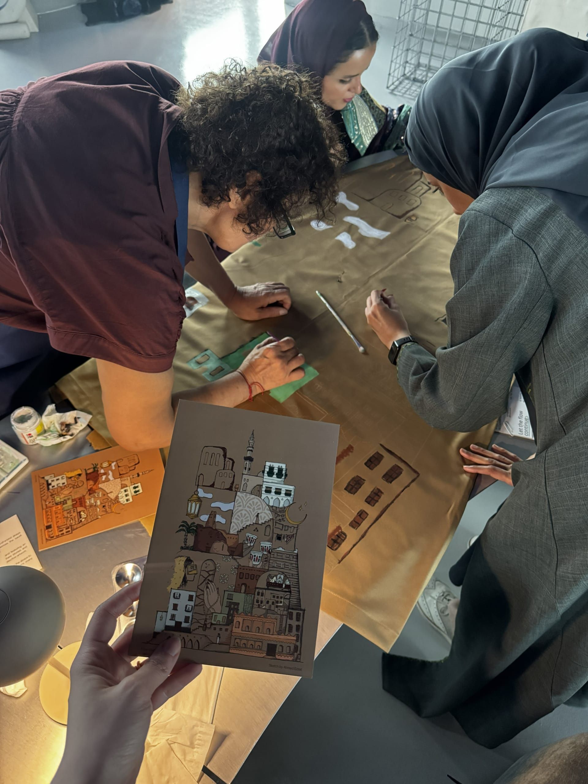 جمع المشروع أكثر من 13 مشاركًا من حول العالم، بينهم فنانون ومصممو مجوهرات وأزياء، في ورشة عمل تطبيقية، وقام المشاركون بالرسم، والخياطة، والتطريز على العباءة، وأضاف كل منهم لمسته الخاصة، حيث قاموا بتحويلها إلى عمل فني جماعي قابل للارتداء.