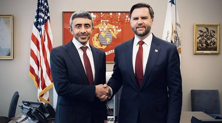 وخلال لقائه جي دي فانس نائب الرئيس الأمريكي، أكد سمو الشيخ عبدالله بن زايد آل نهيان متانة العلاقات التاريخية والشراكة الاستراتيجية الراسخة بين البلدين، مشدداً على أهمية التعاون في مجالات النمو الاقتصادي، والذكاء الاصطناعي، والتكنولوجيا المتقدمة، وأمن الطاقة، والدفاع.