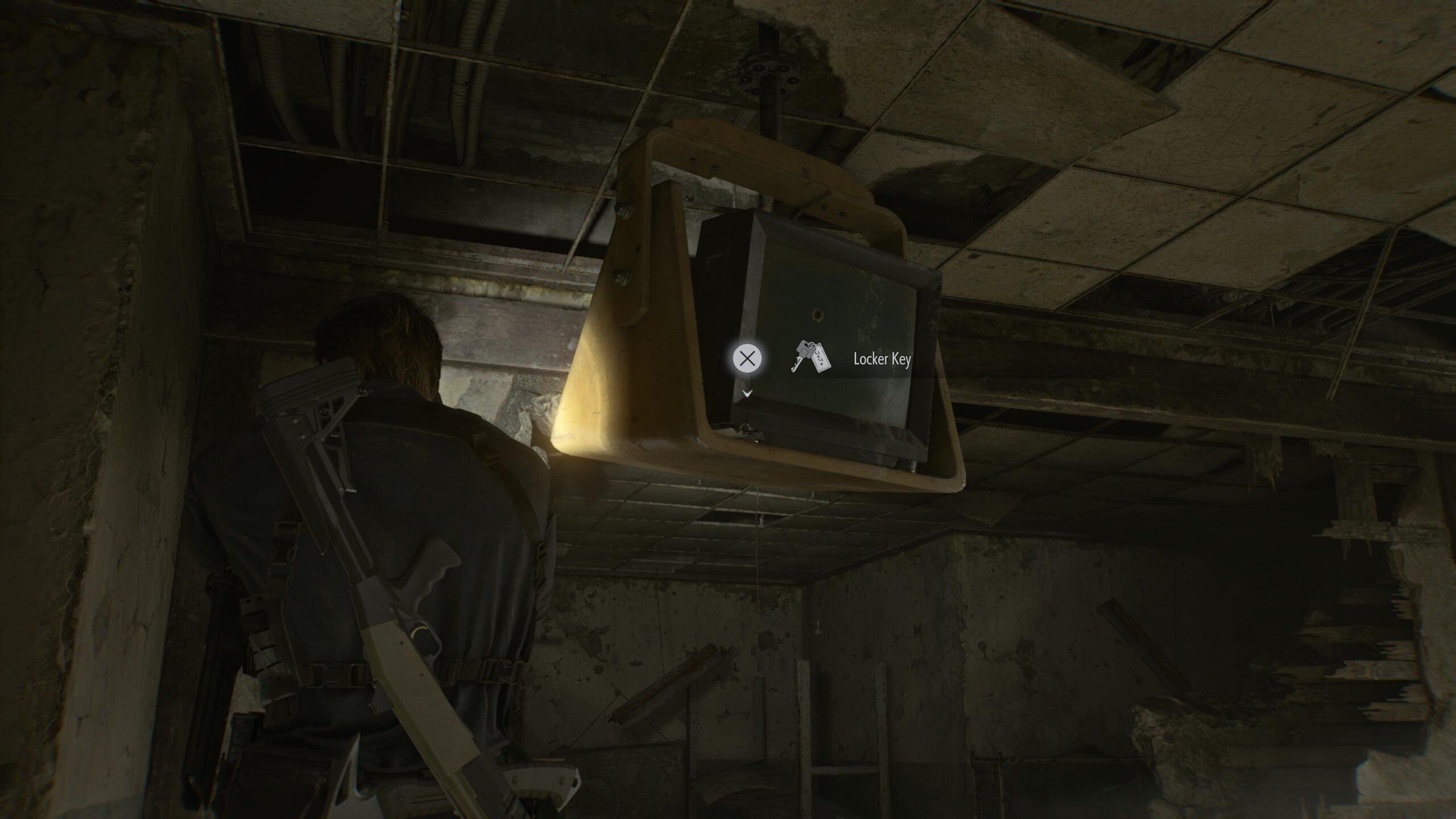 إذا توجهت بعد ذلك إلى غرفة العمليات ونظرت إلى الأعلى، سترى التلفاز بسرعة. أسفله، يمكنك الصعود على صندوق للوصول إلى مفتاح الخزانة (الموسوم باسم JoJo) المخفي بجانب التلفاز.