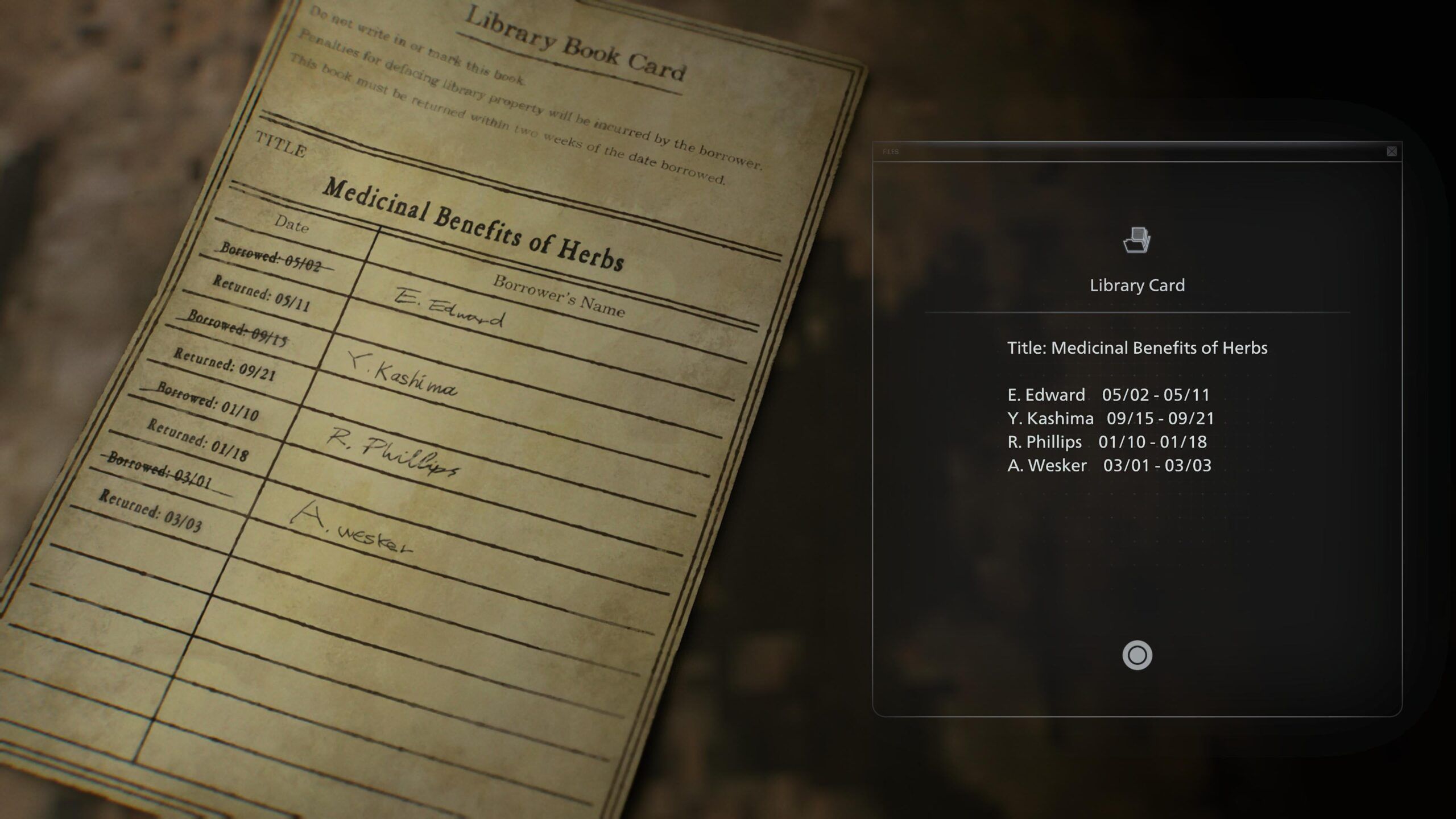 بعد ذلك، توجه إلى المكتبة إذا لم تذهب إليها بعد (تقع أيضًا في الطابق الثاني من الجناح الغربي لـ R.P.D.). في المكتبة، اصعد إلى الطابق العلوي وعبر الممر، وستجد الكتاب المطلوب على الرف يمين الباب.