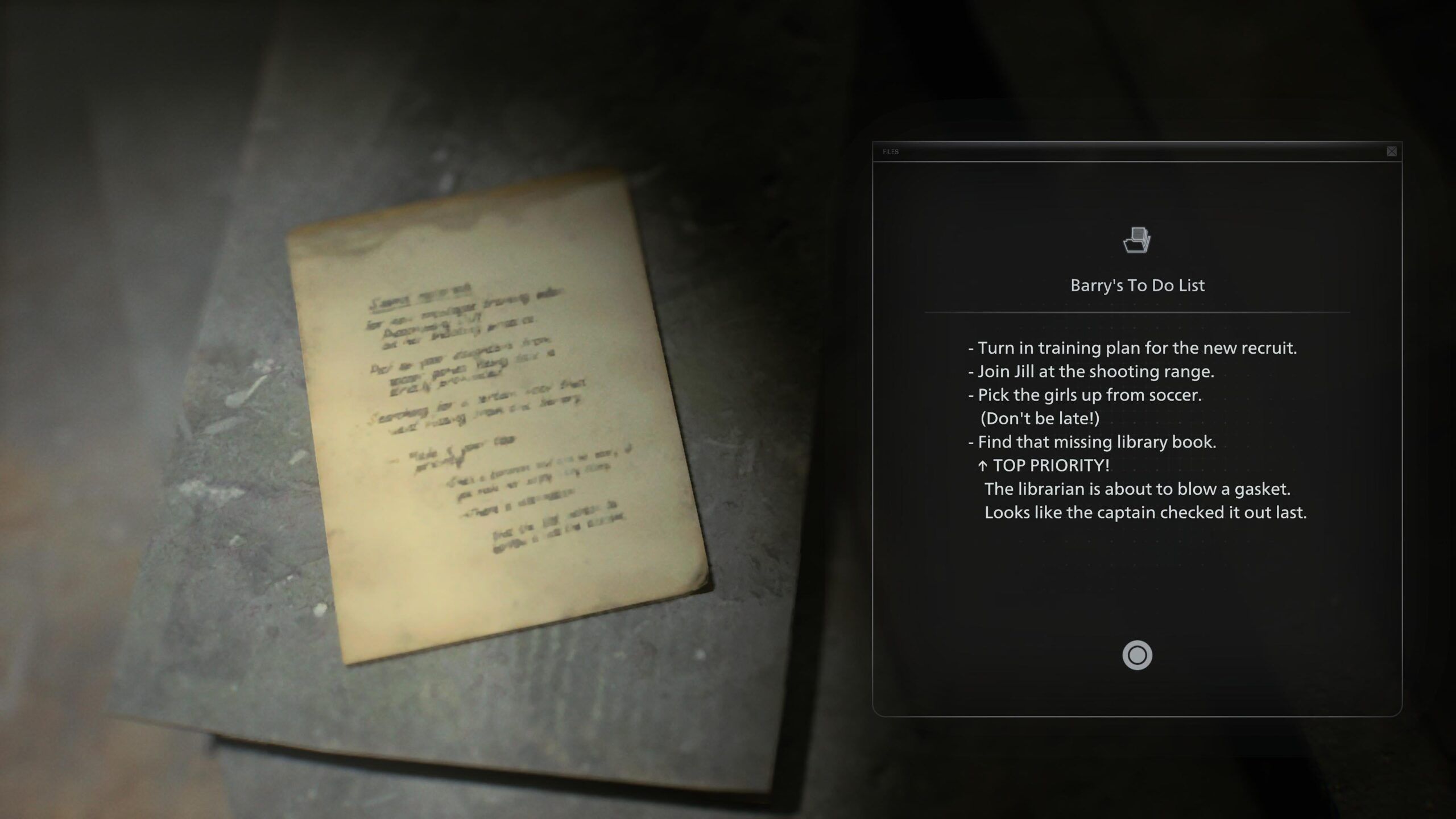 لفك رمز الحقيبة، ستحتاج إلى العثور على بعض الأدلة المحددة جدًا. الأول هو قائمة المهام الخاصة بباري، الموجودة على أحد المكاتب في مكتب S.T.A.R.S.