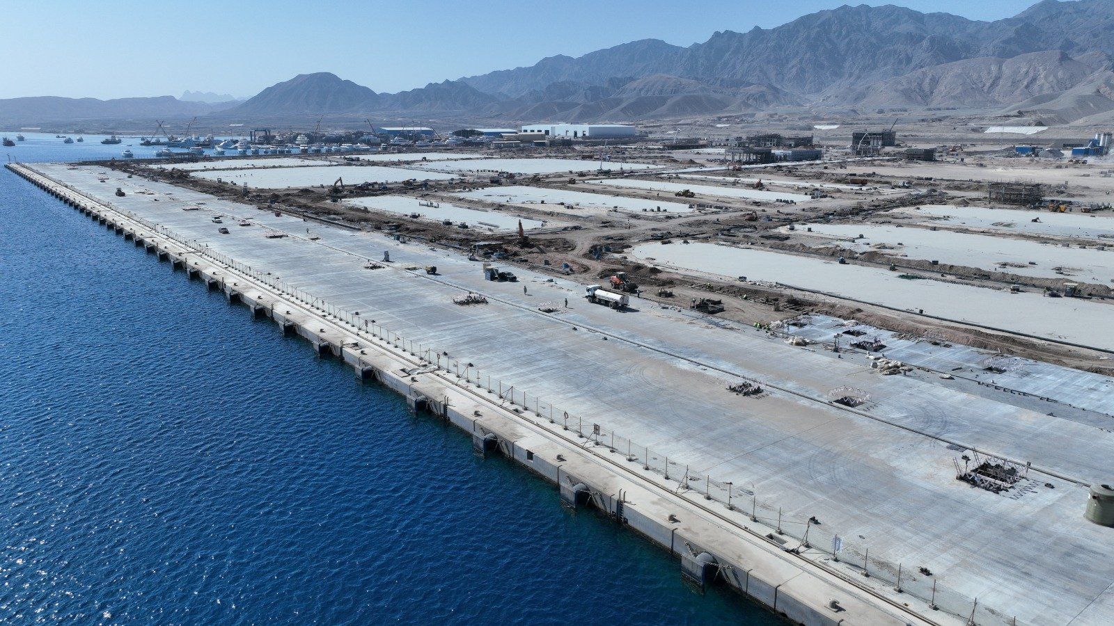 بأيدي شركات وطنية.. الانتهاء من البنية التحتية بنسبة 100% وبدء أعمال البنية الفوقيةيتم تنفيذ المشروع على مساحة 776 ألف م٢ تقريباً، مع رصيف بطول 1100 متر، وعمق 17 متراً، وتم الانتهاء من أعمال البنية التحتية بنسبة 100%، التي نفذتها شركات وطنية مصرية متخصصة، كما تم بدء أعمال البنية الفوقية للمحطة، ومن المخطط أن تستوعب المحطة نحو 500 ألف حاوية سنوياً، بالإضافة إلى استقبال بضائع تقدر بـ 7 مليون طن بضائع.