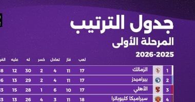 السبت، 28 فبراير 2026 12:00 صيدخل فريق الزمالك الجولة العشرين من بطولة الدوري الممتاز التى تنطلق اليوم السبت وهو على صدارة الترتيب برصيد 37 نقطة، متفوقا على بيراميدز صاحب الوصافة بفارق الأهداف، والتى تجمعهما مواجهة نارية فى هذه الجولة وسط ترقب من الأهلى لخطف الصدارة.