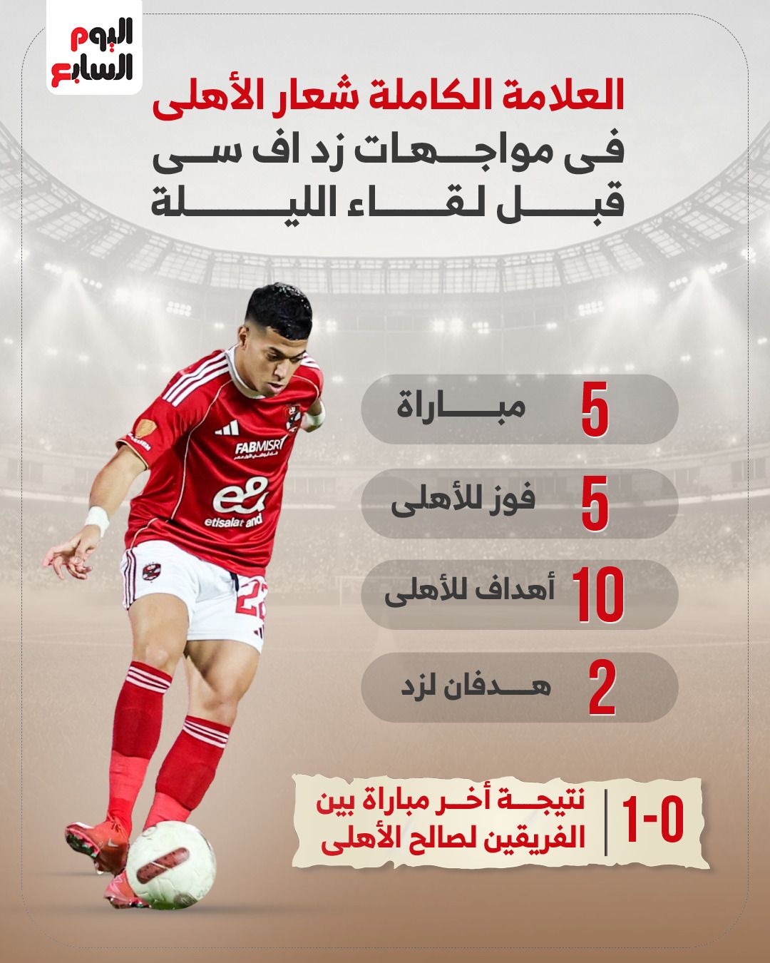 مواجهات الأهلى وزد أف سىالتقى الأهلى مع زد إف سى فى 5 مباريات سابقة، حقق الفوز فيها جميعاً، وسجل لاعبوه 10 أهداف وتلقت شباكه هدفين، وانتهت آخر مباراة جمعت الفريقين بفوز المارد الأحمر بهدف دون رد.