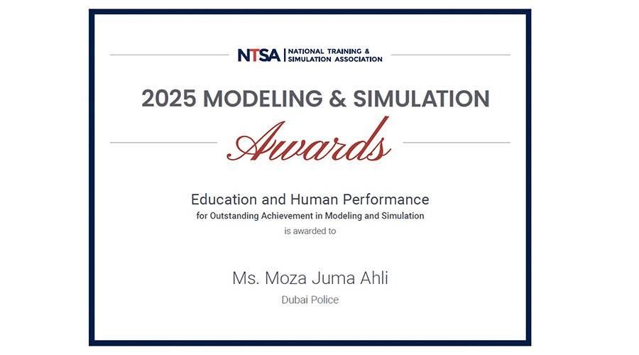 حصدت القيادة العامة لشرطة دبي، مُمثلة في إدارة تقييم البرامج في الإدارة العامة للتدريب، جائزة أفضل ممارسة على مستوى العالم في قياس أثر التدريب، في فئة التعليم والأداء البشري لعام 2025، وذلك من الجمعية الوطنية للتدريب والمحاكاة الأمريكية «NTSA»، تقديراً لجهودها الريادية في تطوير وتطبيق نموذج متقدم لقياس أثر التدريب المؤسسي وربطه بمؤشرات الأداء الاستراتيجية والنتائج التشغيلية.
