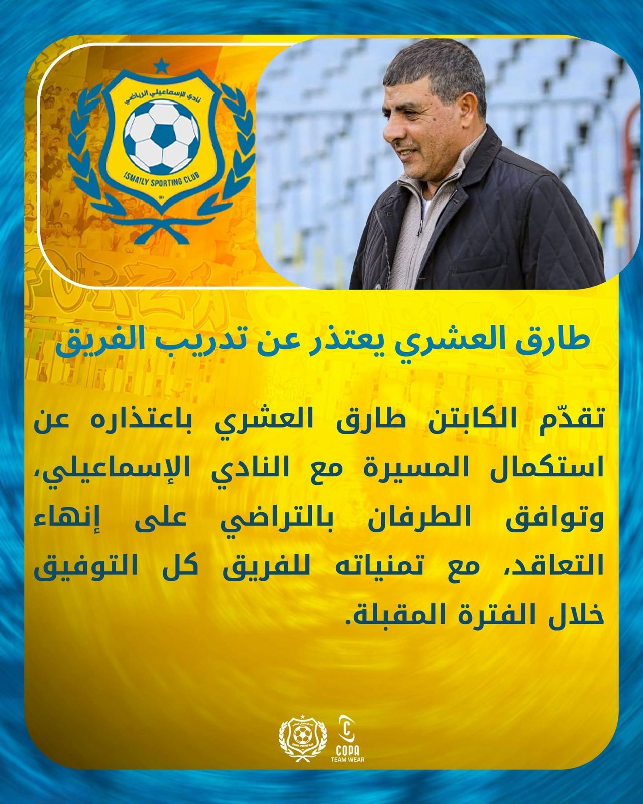 الأحد، 01 مارس 2026 02:04 صتقدّم طارق العشري المدير الفنى لفريق الإسماعيلي باعتذاره عن استكمال المسيرة مع النادي وانهاء التعاقد بين الطرفان بالتراضي.