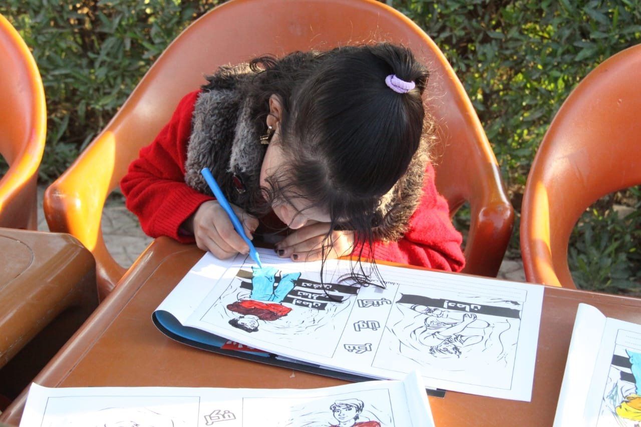 كما تم تنفيذ ورش حكي وألعاب تفاعلية متعددة للأطفال تتضمن الرسم وتلوين الكراسات واستخدام الأساليب الإبداعية التي تتماشى مع المراحل العمرية للأطفال كذلك عروض فنية ورياضية وثقافية تستهدف رفع الابتكار والتفكير لدى الأطفال وتنمية مهارات التواصل والعمل الجماعي لديهم وربط هذه المهارات بمواجهة مشكلة تعاطي وإدمان المخدرات والتحذير من خطورة التدخين، كما تضمنت الأنشطة للأطفال لعبة "السلم والدخان" التي تبرز أن من يدخن ويحاول الوصول إلى درجة متقدمة من خلال السلم لا يستطيع ،ويرجع للوراء بسبب أن التدخين والمخدرات يؤثران على صحته، في حين أن الشخص الذي لا يدخن يستطيع أن يحصل على درجات متقدمة ويحقق أهدافه، كما يستطيع أن يفكر بشكل سليم ويتخذ القرار الصحيح بعكس من يدخن، كما تم توزيع هدايا ولعب للأطفال مرتبطة برفع وعيهم بأضرار التدخين.