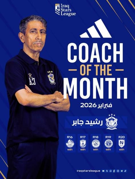 اختارت لجنة المسابقات في الاتحاد العراقي لكرة القدم، الأحد، العُماني رشيد جابر، المدير الفني لفريق القوة الجوية الأول الكروي، الذي ينشط في مسابقة دوري نجوم العراق، كأفضل مدرب لشهر فبراير/ شباط الحالي.