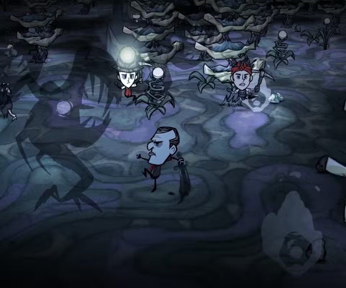 في Don’t Starve Together يزداد التعقيد مع إضافة عنصر التعاون حيث يمكن للاعبين العمل معا لتوزيع المهام وتبادل الموارد ومواجهة التهديدات الكبرى لكن في الوقت ذاته تتطلب الإدارة الجماعية تنسيقا دقيقا لأن أي خطأ قد يؤدي إلى انهيار السلسلة الغذائية أو فشل الدفاعات أمام موجة من الكائنات العدائية.