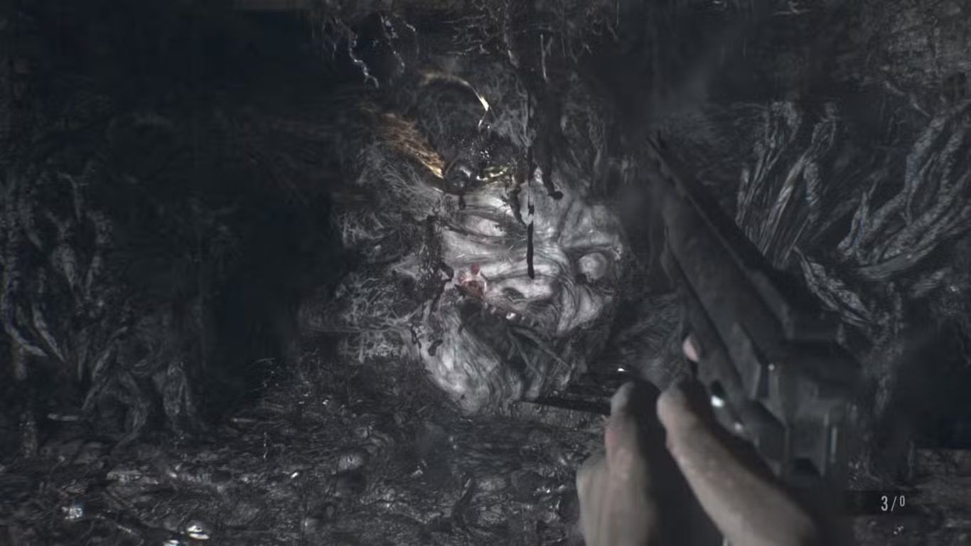 يستمر الاشتباك لبضع لحظات إضافية حتى يتراكم الضرر الكافي مما يؤدي إلى إضعاف Eveline بشكل نهائي ويمهد لتدخل حاسم ينهي Molded nightmare الذي سيطر على Baker residence منذ بداية الأحداث وبذلك تختتم Resident Evil 7 معركة تصاعدت عبر ثلاث مراحل متتالية جمعت بين الضغط النفسي والقوة البيولوجية في مواجهة أخيرة حاسمة.