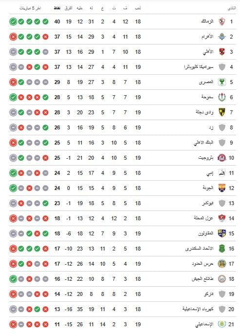 الأهرام ضد الزمالك .. ترتيب الدوري المصري