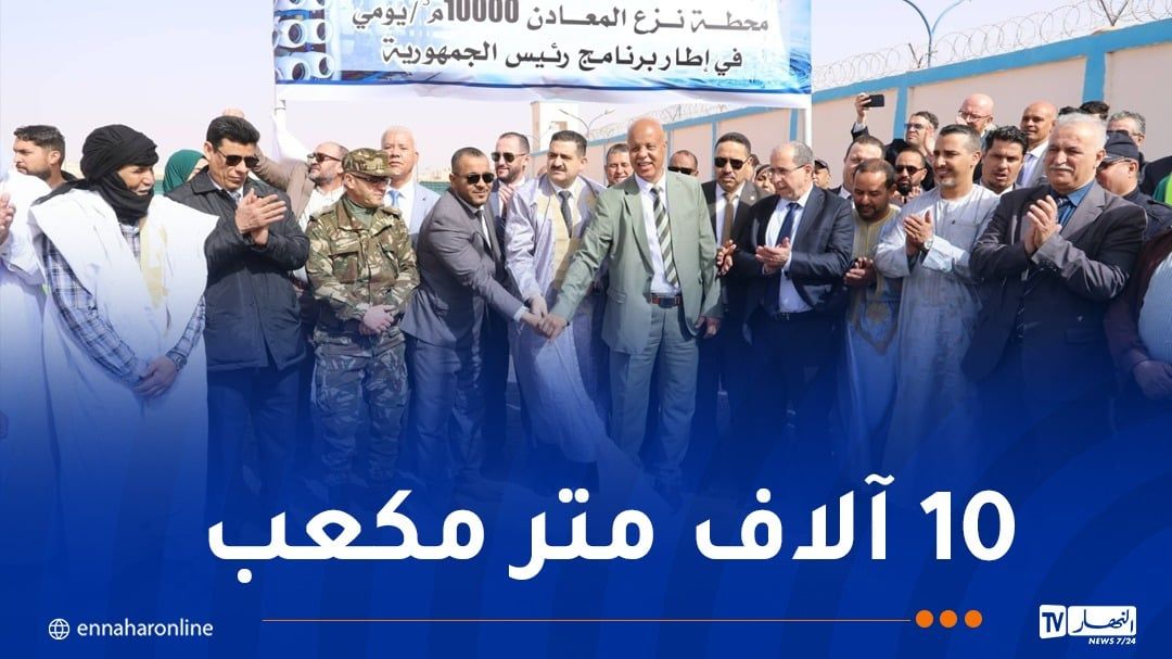 أشرف اليوم وزير الري، طه دربال، على إطلاق أشغال إنجاز محطة جديدة لنزع المعادن بسعة 10 آلاف متر مكعب يوميًا بولاية تندوف. بالإضافة إلى مشروع توسعة المحطة القديمة لرفع طاقة إنتاجها من 15 ألف متر مكعب يوميًا إلى 20 ألف متر مكعب يوميًا.