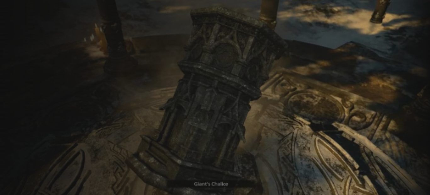 بعد استخدام Giant’s Chalice في Ritual Site لا يقتصر التغيير على ظهور الجسور الحجرية فقط بل تتحول المنصة المركزية في الموقع إلى مصعد ضخم يعمل كآلية انتقال إلى المرحلة التالية. يحدث هذا التحول بعد لحظات قصيرة من تفعيل الكأس حيث تنفصل أرضية الساحة تدريجيًا وتبدأ المنصة بالانخفاض ببطء إلى الأسفل في مشهد يعزز الإحساس بالدخول إلى منطقة محظورة وعميقة داخل بنية القرية.