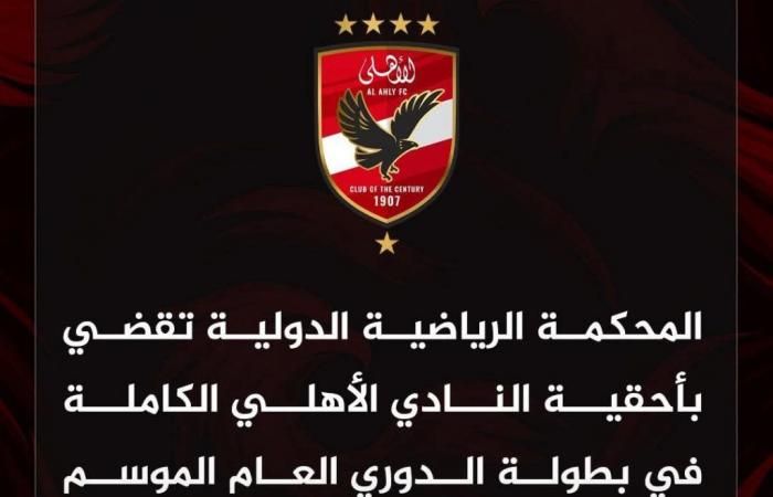 المحكمة الرياضية الدولية تُثبت تتويج الأهلي بالدوري وترفض طعن المنافس