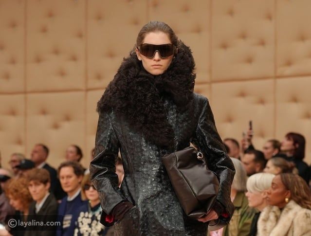 - كانت المعاطف الجلدية الواسعة من أبرز القطع، حيث بدت أسطحها وكأنها تعكس لمعانًا عضويًا يشبه صدفة السلحفاة، هذا التأثير لم يكن مجرد تفصيل بصري، بل أضاف عمقًا ملمسيًا جعل القطع تبدو حية تقريبًا.