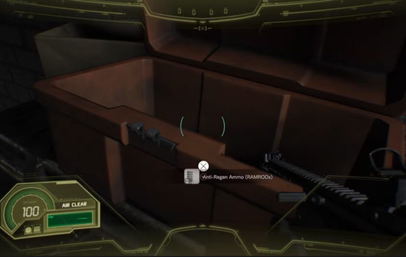 قبل أن تبدأ المواجهة فعليا ستحصل على لحظات قصيرة ثمينة داخل الغرفة يجب استغلالها بأقصى سرعة وكفاءة قم بتحطيم الصناديق المنتشرة في أرجاء المكان للحصول على الذخيرة والعناصر الإضافية ثم توجه مباشرة إلى الرف الموجود على الجهاز في منتصف الغرفة لالتقاط طلقات RAMROD المضادة للتجدد وهي عنصر أساسي في هذه المعركة نظرا لقدرة Lucas المتحول على تجديد أنسجته بسرعة.