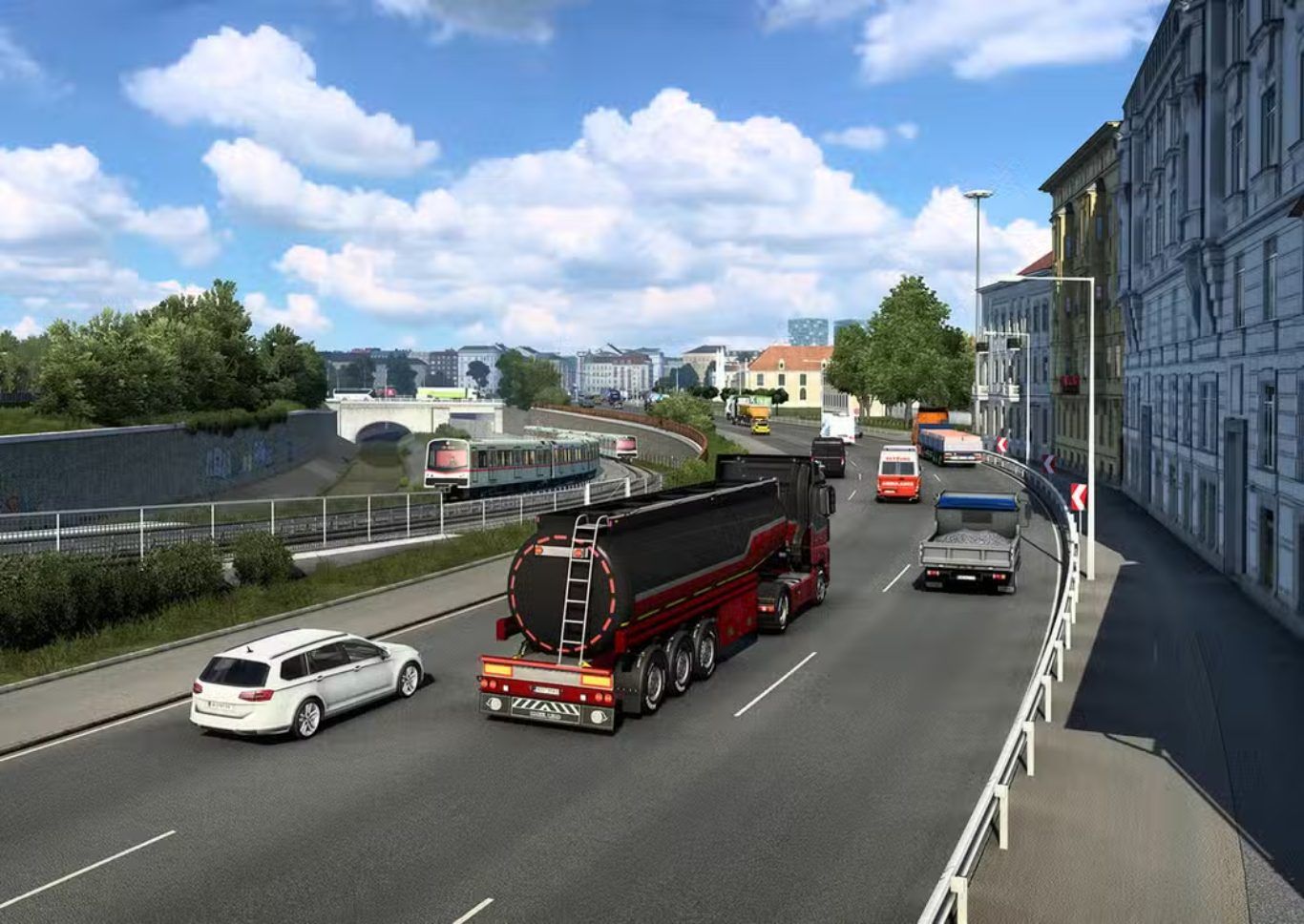 تعد لعبة Euro Truck Simulator 2 واحدة من أبرز عناوين القيادة والمحاكاة على الإطلاق حيث استطاعت أن تحافظ على مكانتها القوية رغم مرور أكثر من عشرة أعوام على إطلاقها وتقدم تجربة تعتمد على الواقعية العالية والانغماس الكامل داخل عالم مفتوح واسع يمتد عبر مدن وطرق مستوحاة من مختلف أنحاء القارة الأوروبية.