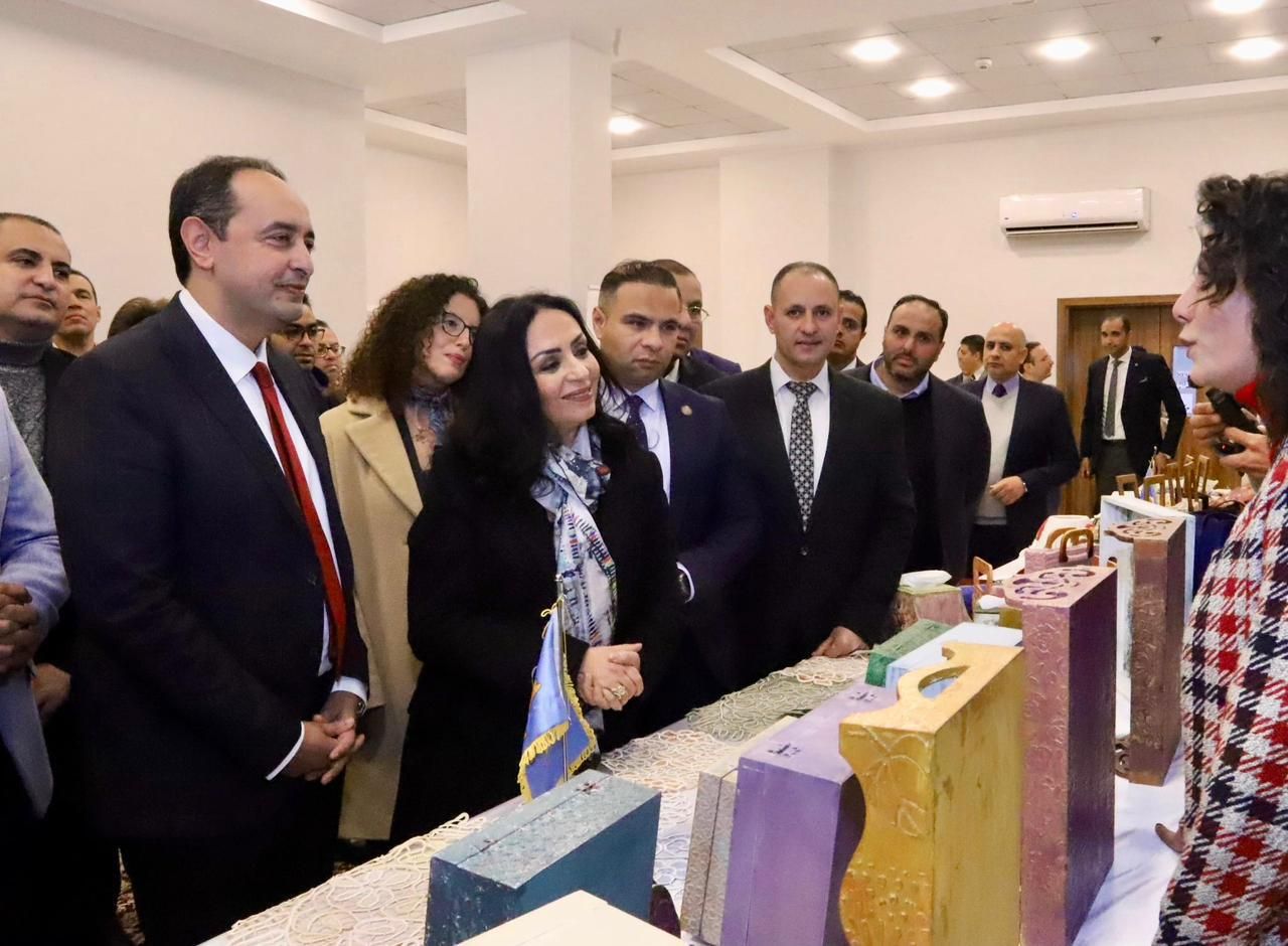 الدكتورة مايا مرسى وزيرة التضامن والدكتور عمرو عثمان خلال تفقد المعرض بحضور الكاتب الصحفى مدحت وهبه
