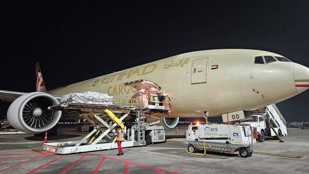 وقد نقلت طائرة شحن تابعة للاتحاد للطيران، شحنة كبيرة تضم نحو 12 ألف طرد بوزن يناهز 80 ألف كيلوجرام من المنتجات الطازجة من الهند إلى أبوظبي. وأشارت الشركة إلى أنه سيتم تسيير مزيد من رحلات الشحن في الأيام المقبلة في إطار الجهود المبذولة للحفاظ على مستويات المخزون في متاجرها على مستوى دولة الإمارات.