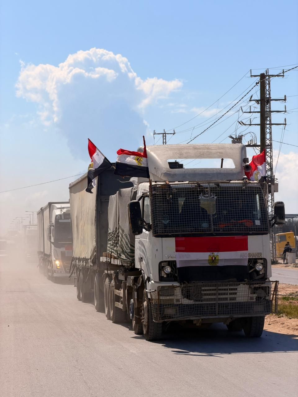 السبت، 07 مارس 2026 08:05 ميستمر دخول قوافل المساعدات المصرية لقطاع غزة، حيث رُصد أحد مقاطع الفيديو لدخول شاحنات محملة بالمساعدات الإنسانية، وتحمل أعلام مصر داخل القطاع اليوم السبت 7 مارس 2026.