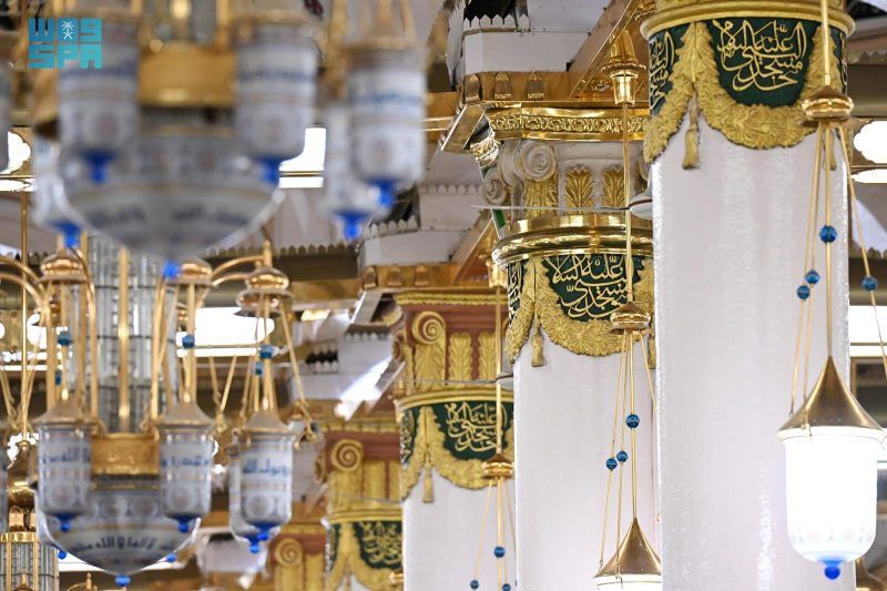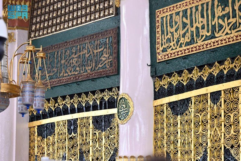 كما عكست الروضة الشريفة، الواقعة بين القبر الشريف ومنبر النبي صلى الله عليه وسلم، جماليات معمارية خاصة، بأعمدتها وتفاصيلها الزخرفية التي أظهرت تمازجًا فنيًا، في صورة تاريخية جسّدت البعد الروحي والفني لهذا الجزء من المسجد.
