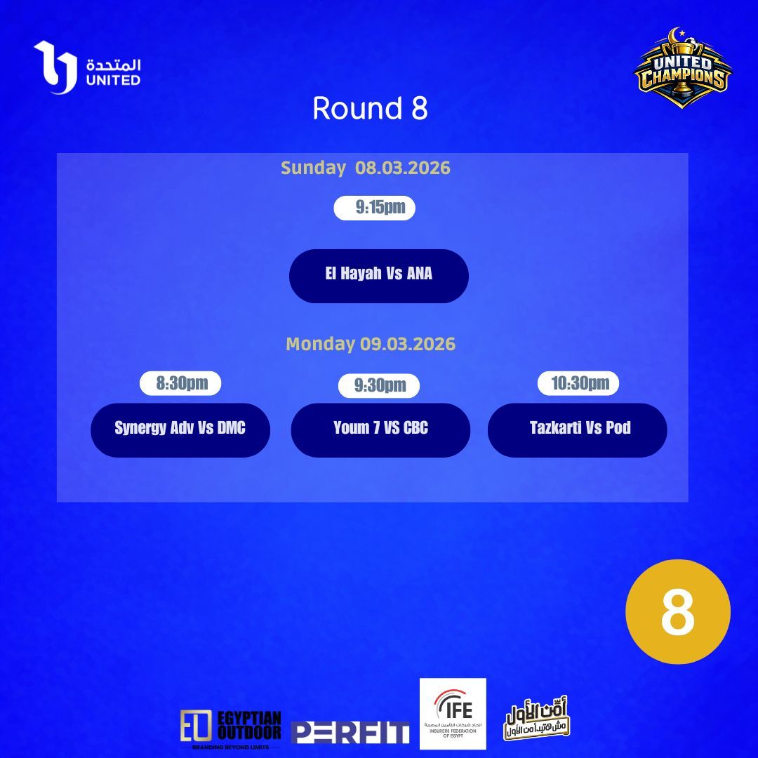أجريت قرعة دور الثمانية لدورة المتحدة الرمضانية المقامة على ملعب مدارس مارفيل بمدينة الشيخ زايد.