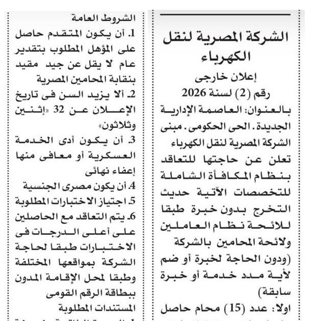 جريدة الاهرام وظائف شركة الكهرباء