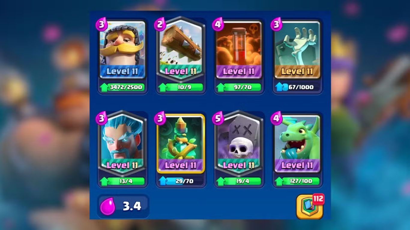الجدول التالي يوضح بطاقات هذا Deck ومتوسط تكلفة كل بطاقة من Elixir.