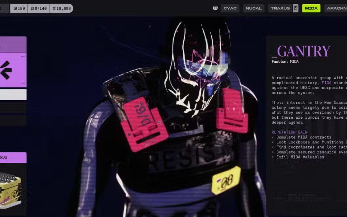 فصيل MIDA ومستويات السمعة والمكافآت في لعبة Marathon