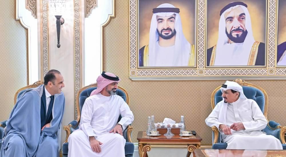 حضر الاستقبال، الشيخ أحمد بن حميد النعيمي، ممثل صاحب السمو حاكم عجمان للشؤون الإدارية والمالية، والشيخ عبدالعزيز بن حميد النعيمي، رئيس دائرة السياحة والثقافة والإعلام، والشيخ راشد بن حميد النعيمي، رئيس دائرة البلدية والتخطيط، وعدد من الشيوخ وكبار المسؤولين. (وام)