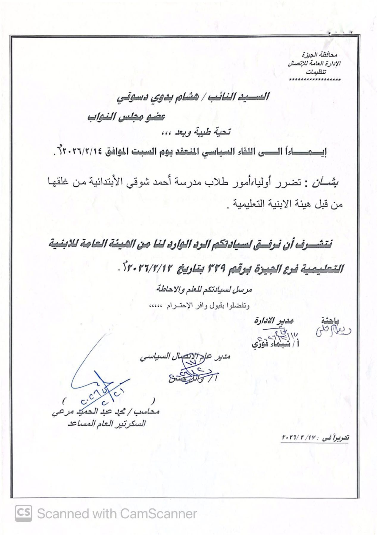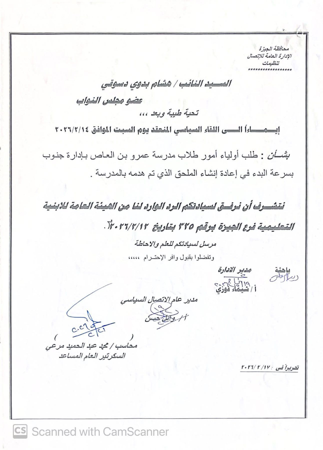 ويأتي هذا التحرك استجابة لمطالب أهالي الدائرة، وحرصًا على تعظيم الاستفادة من المنشآت التعليمية القائمة لخدمة العملية التعليمية والارتقاء بمستوى الخدمات المقدمة للمواطنين.