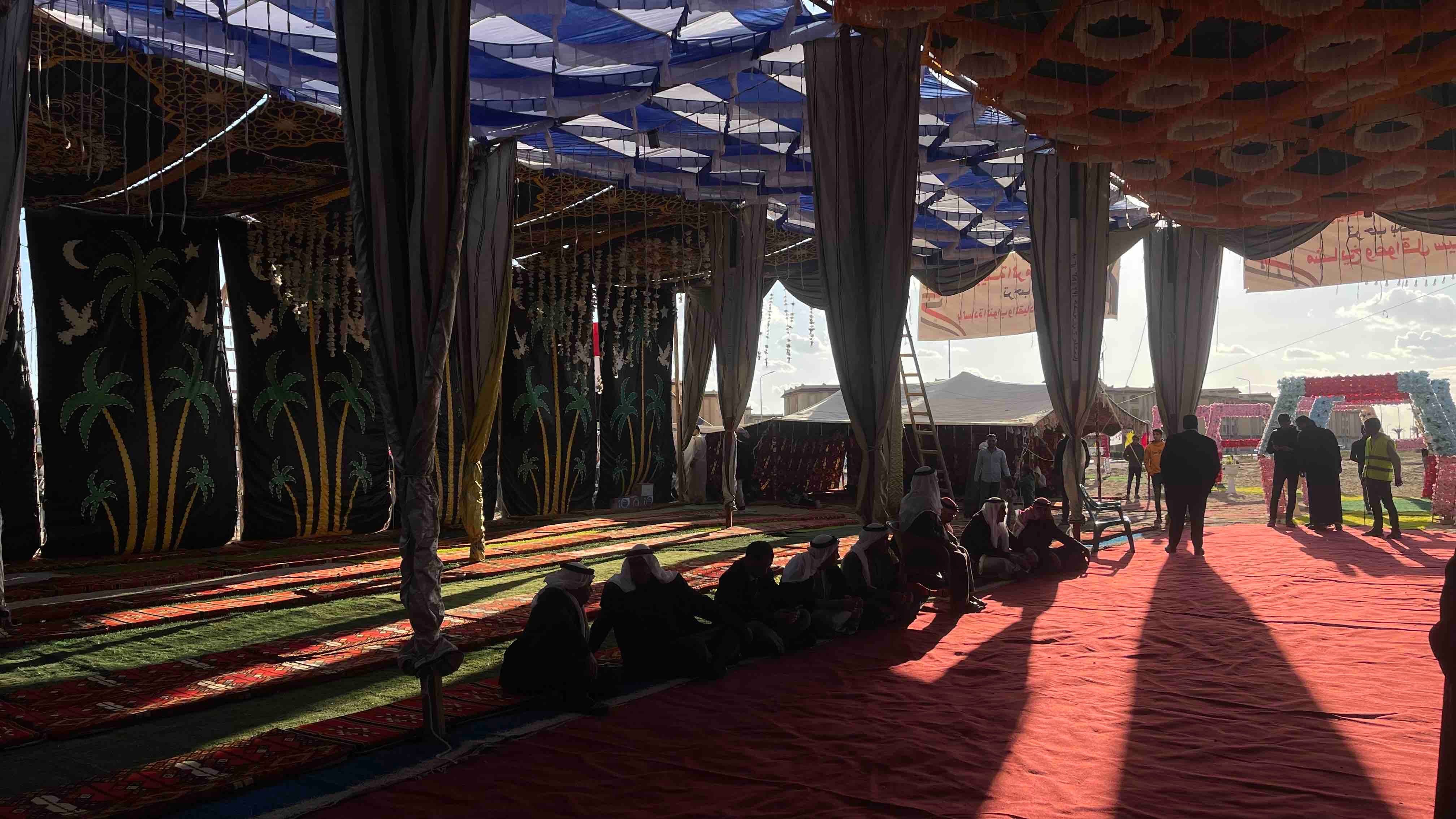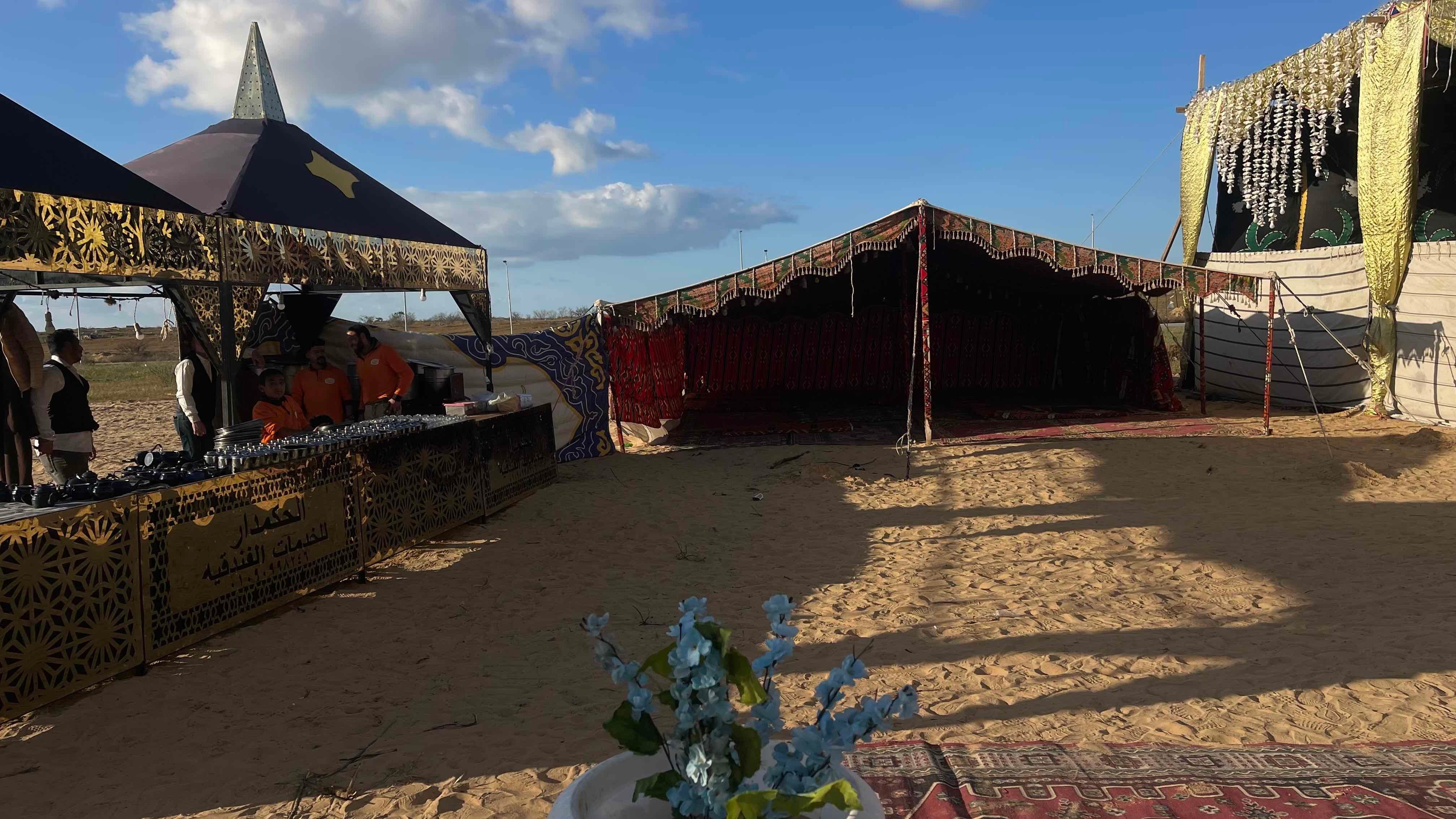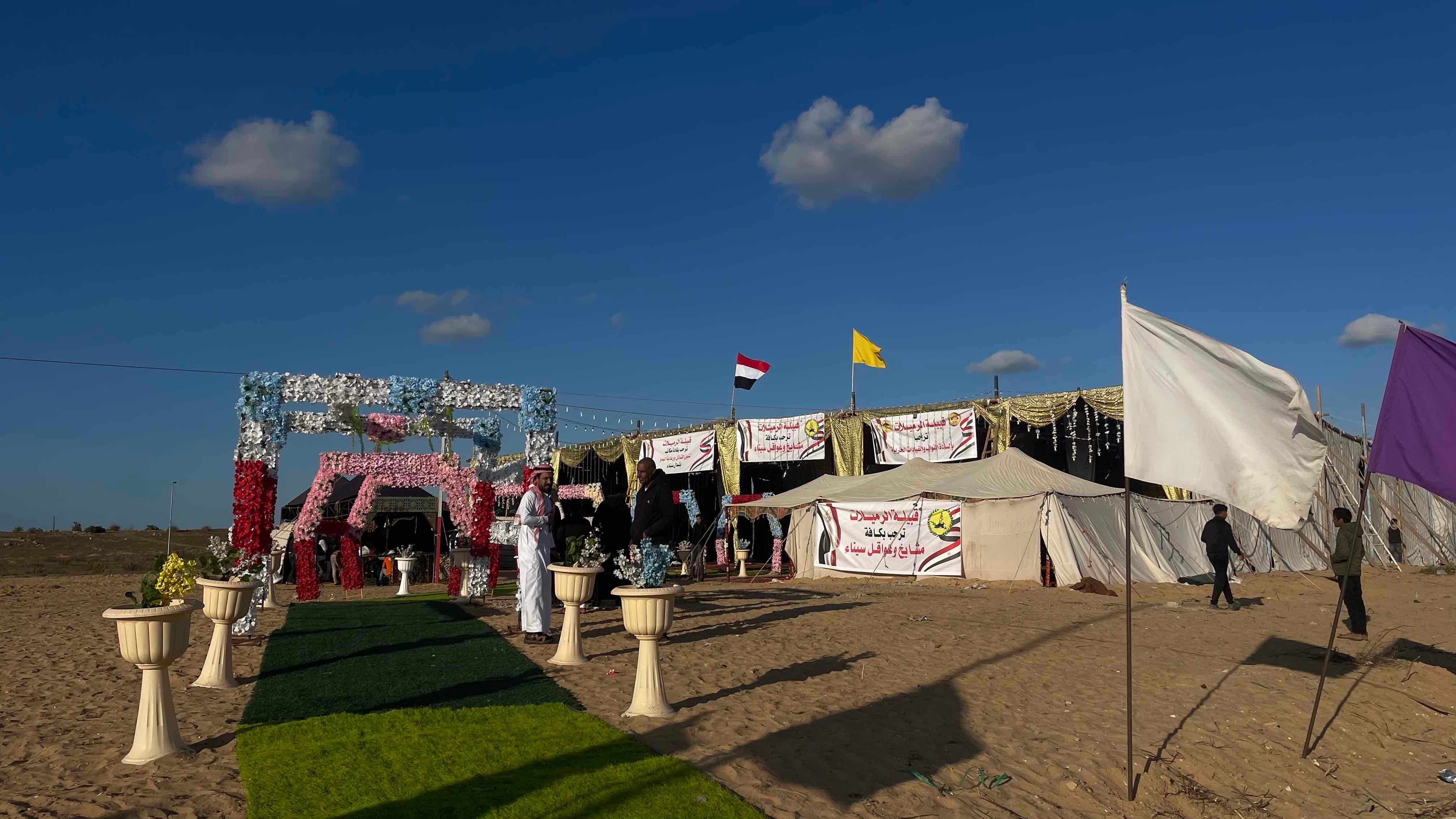 تجهيز واجهه الخيم لاستقبال الضيوف في رفح