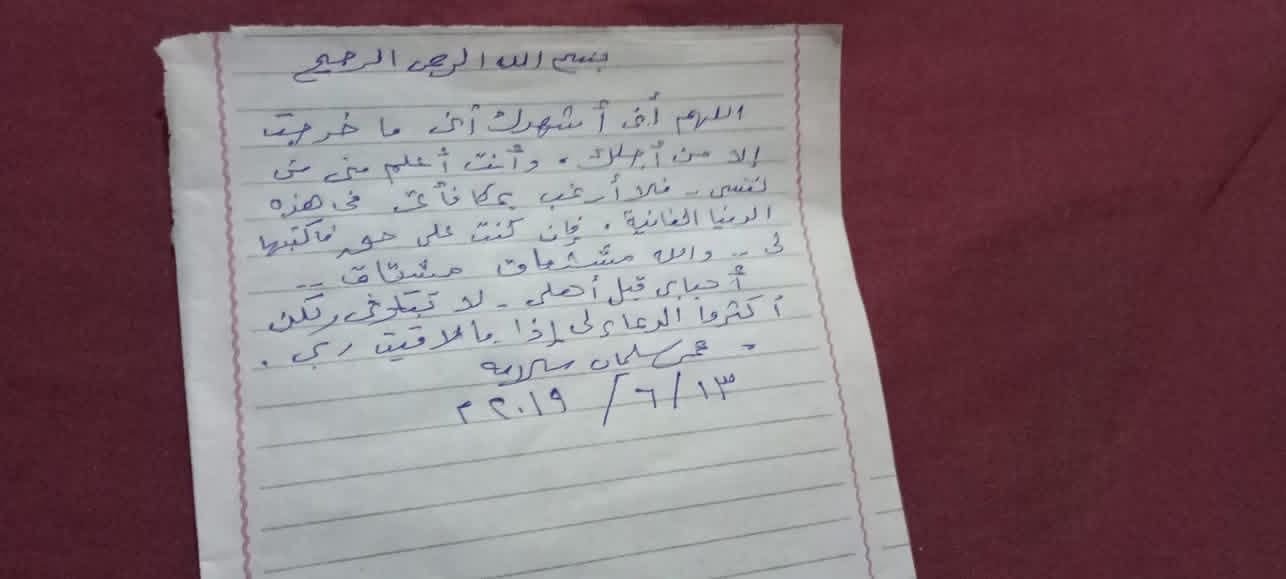 استشهاده في مواجهة الإرهاب برفحوقال والد الشهيد إن نجله عمر سليمان كان مثالًا للشجاعة والإخلاص في خدمة وطنه، مشيرًا إلى أنه استشهد خلال مشاركته في مواجهة العناصر الإرهابية بمنطقة المطلة بمدينة رفح، وذلك في الأول من يونيو عام 2022، أثناء أداء واجبه الوطني في الحرب على الإرهاب.