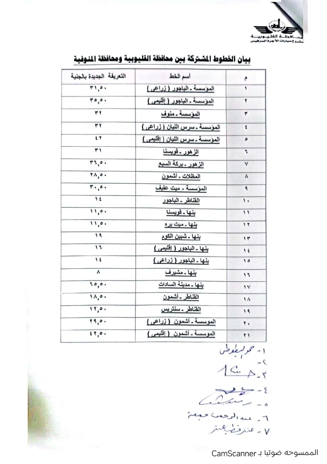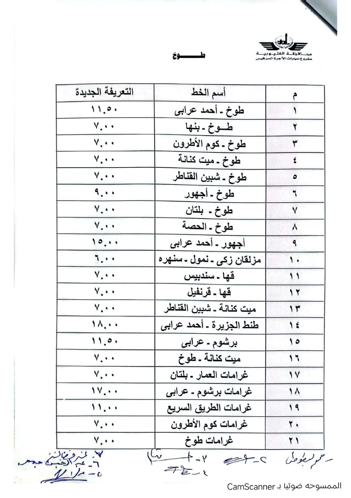 تعريفة الركوب الجديدة لسيارات الأجرة في القليوبية (2)