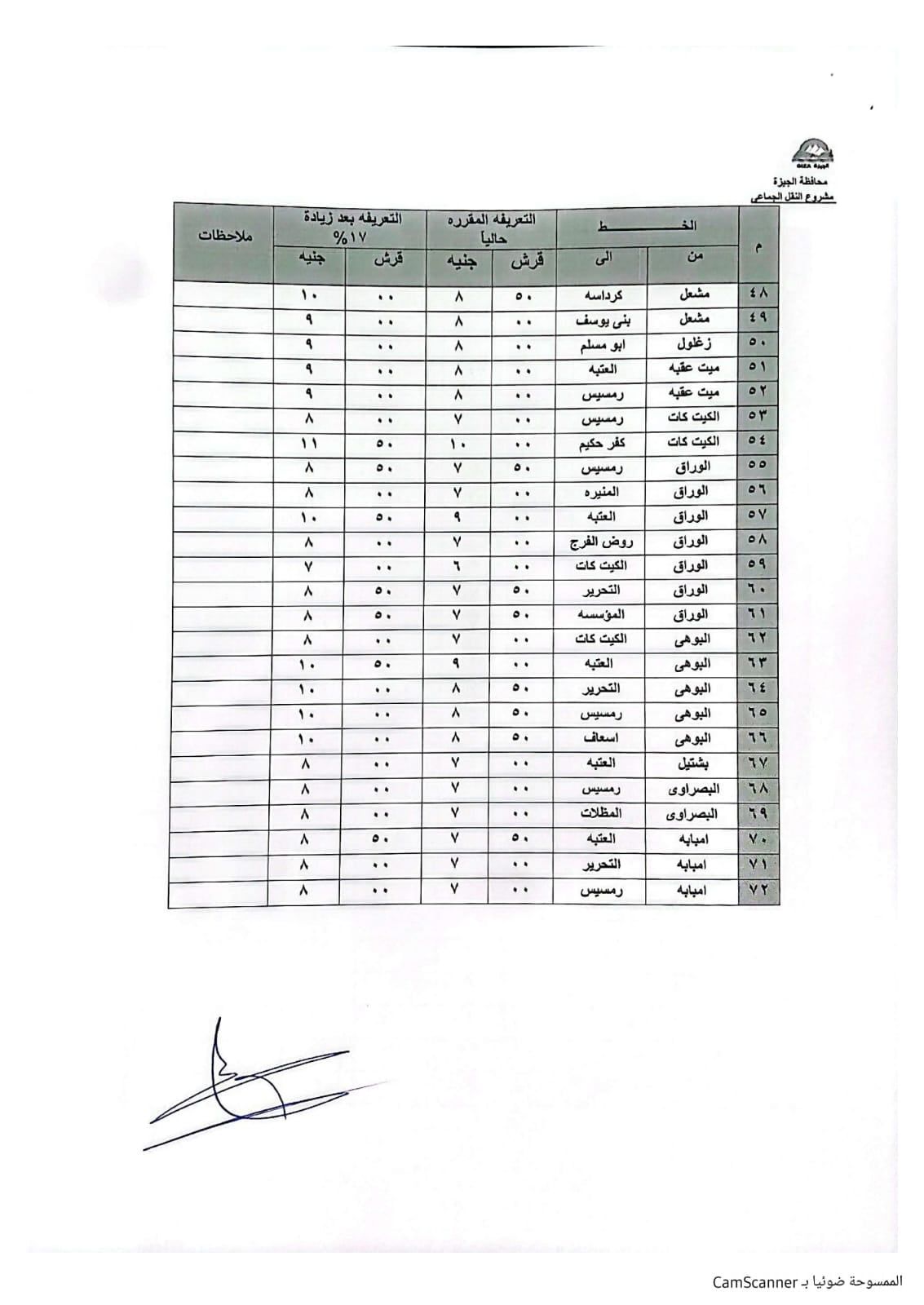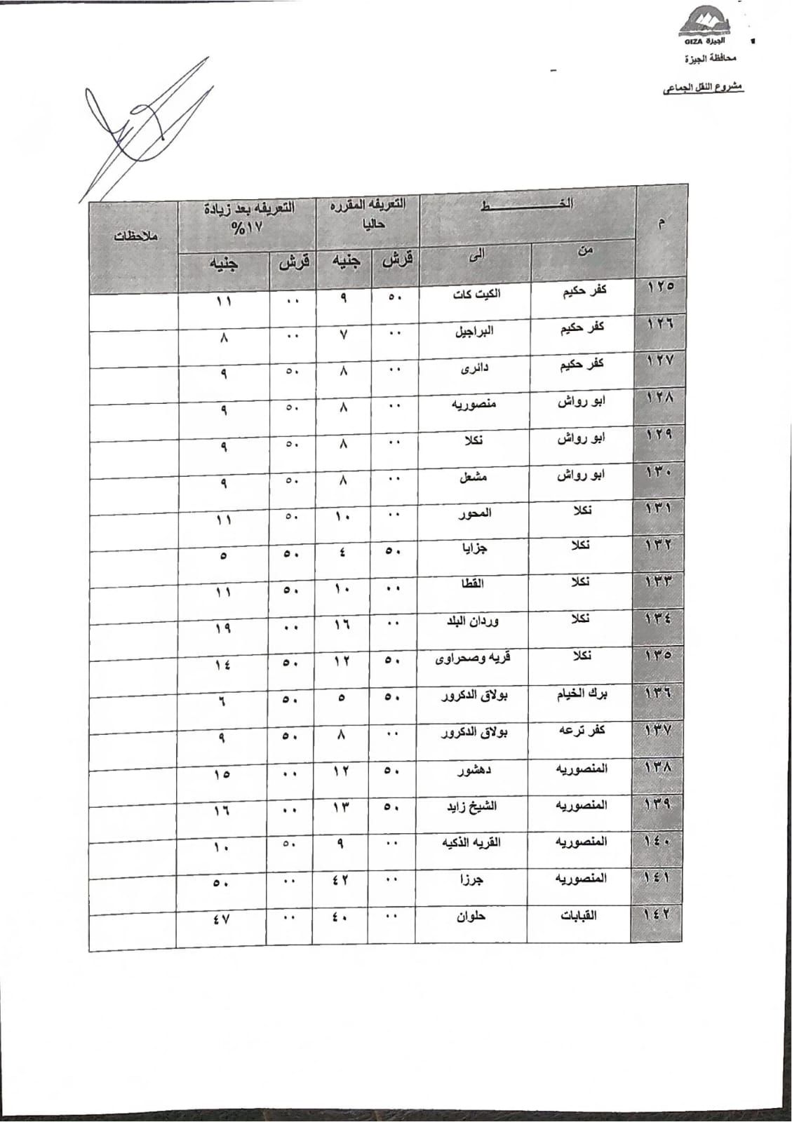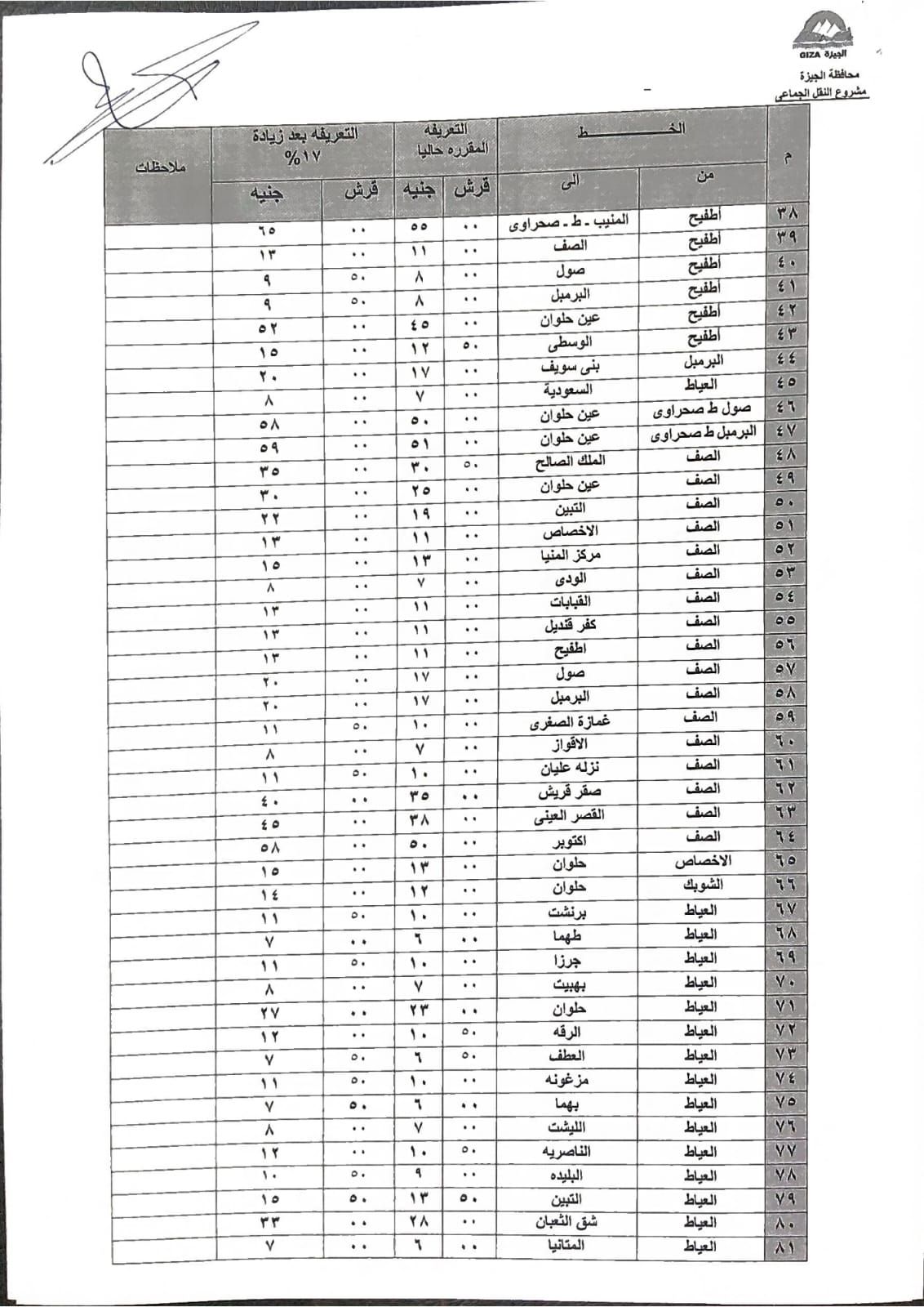 تنسيق تعريفة خطوط السير بين الجيزة والمحافظات المجاورة