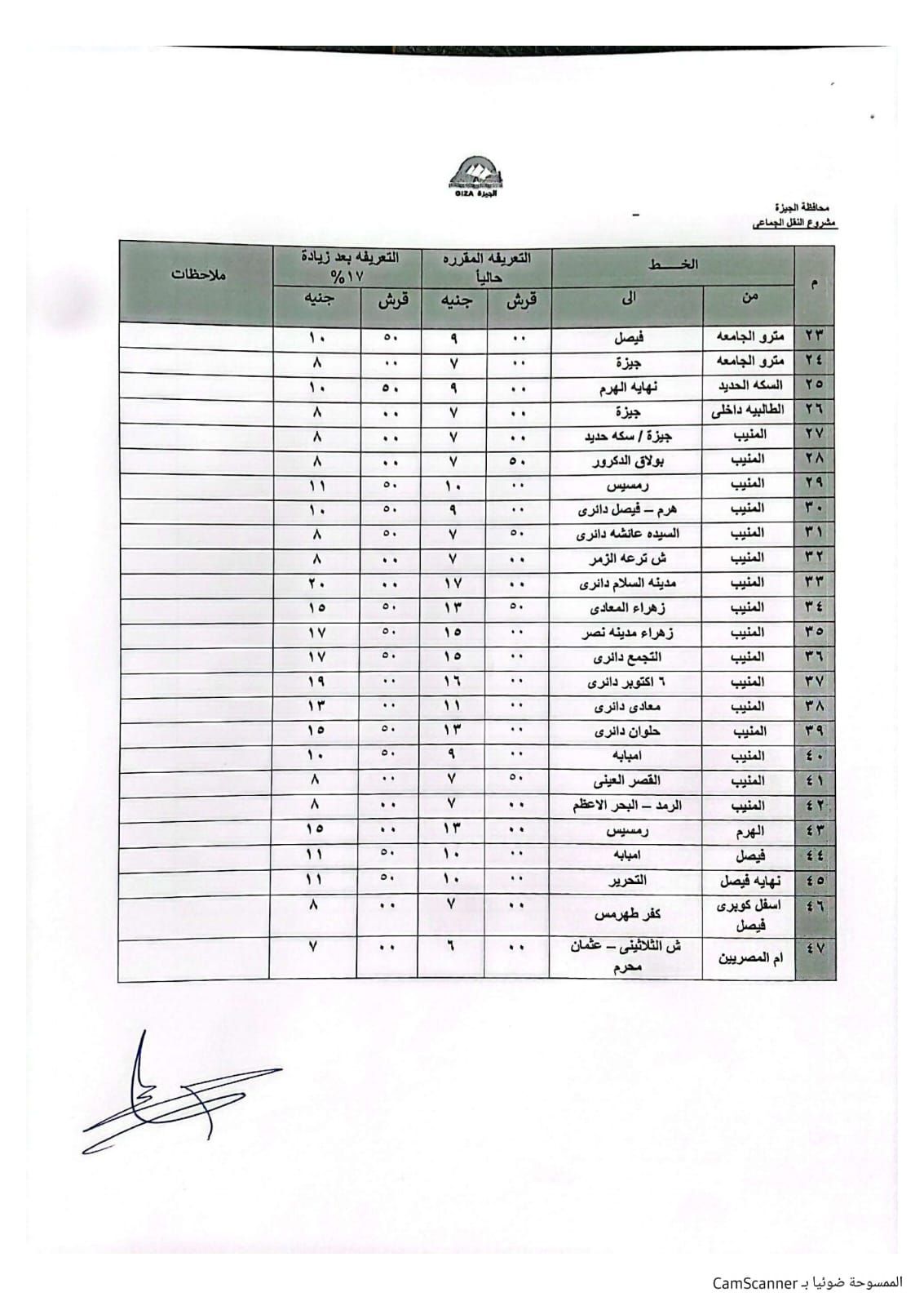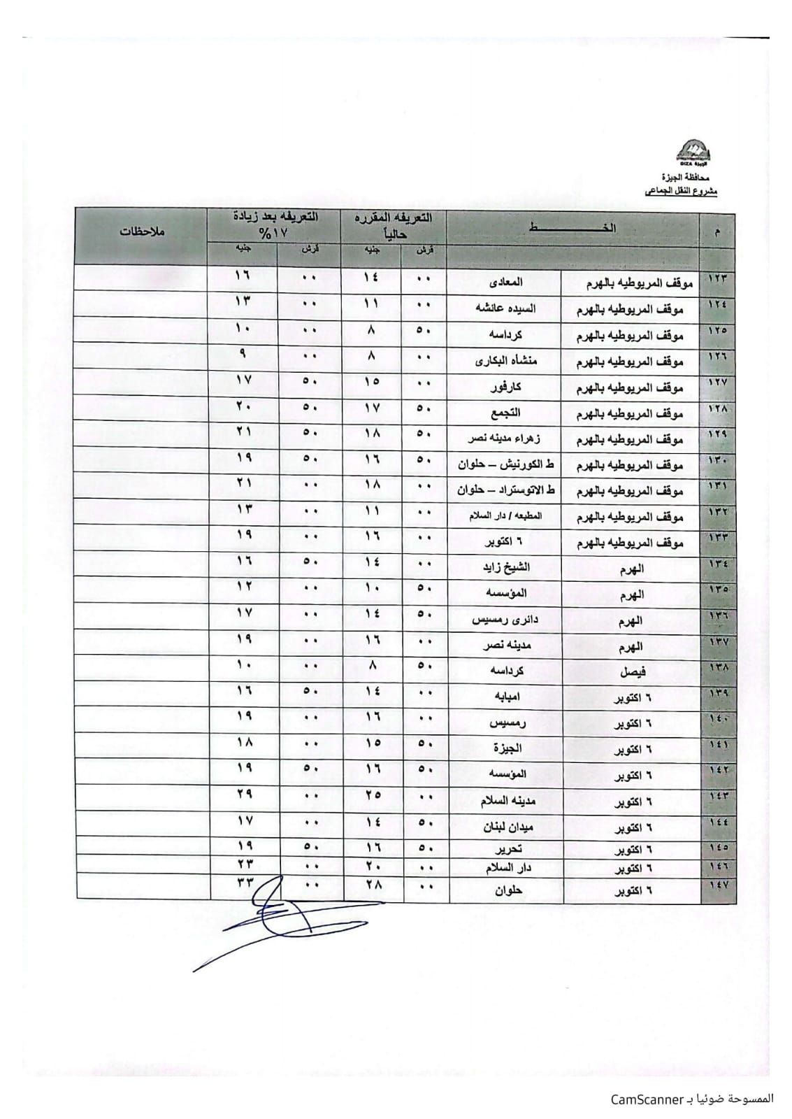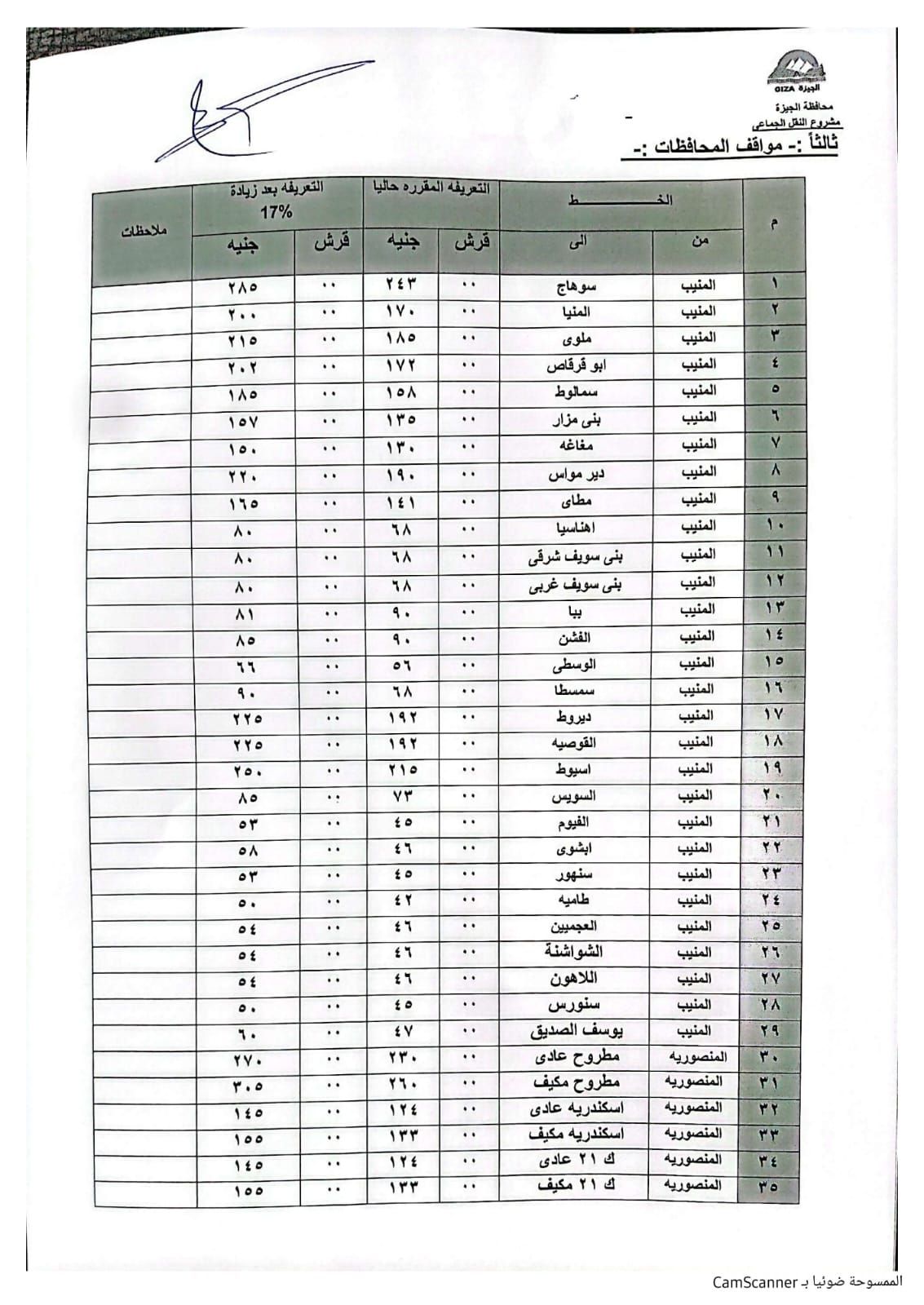 تنسيق تعريفة خطوط السير بين الجيزة والمحافظات المجاورة