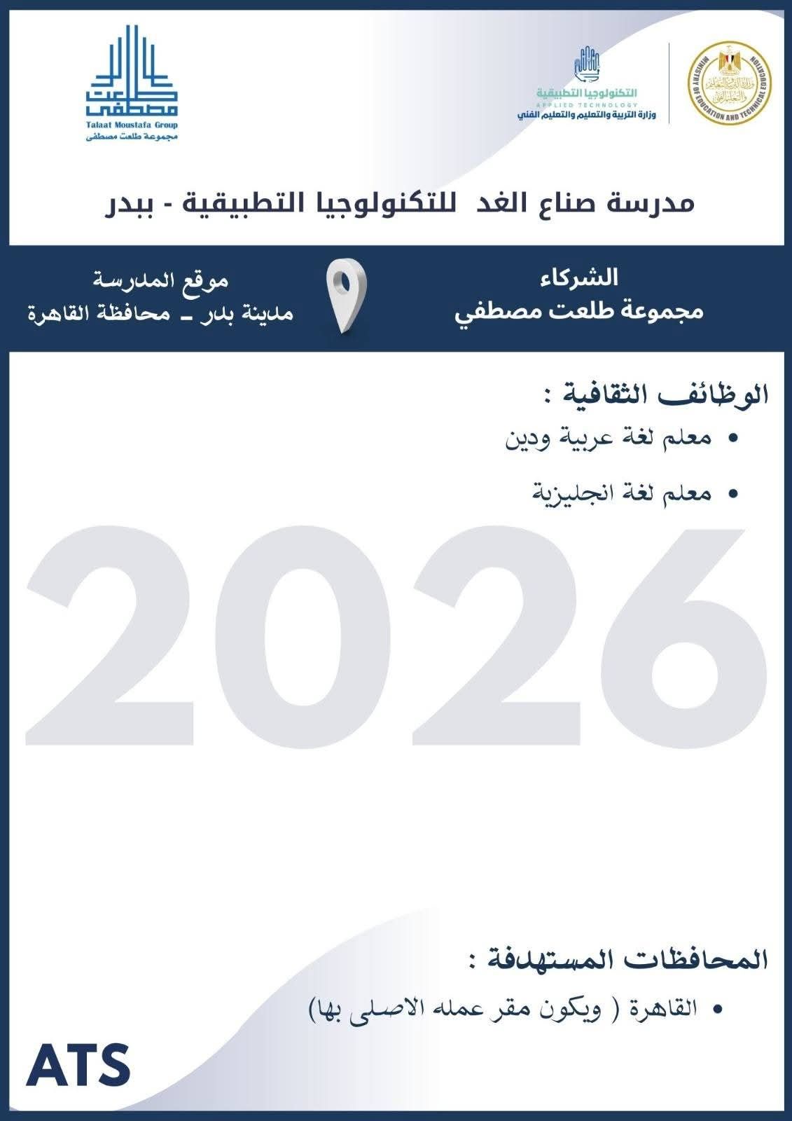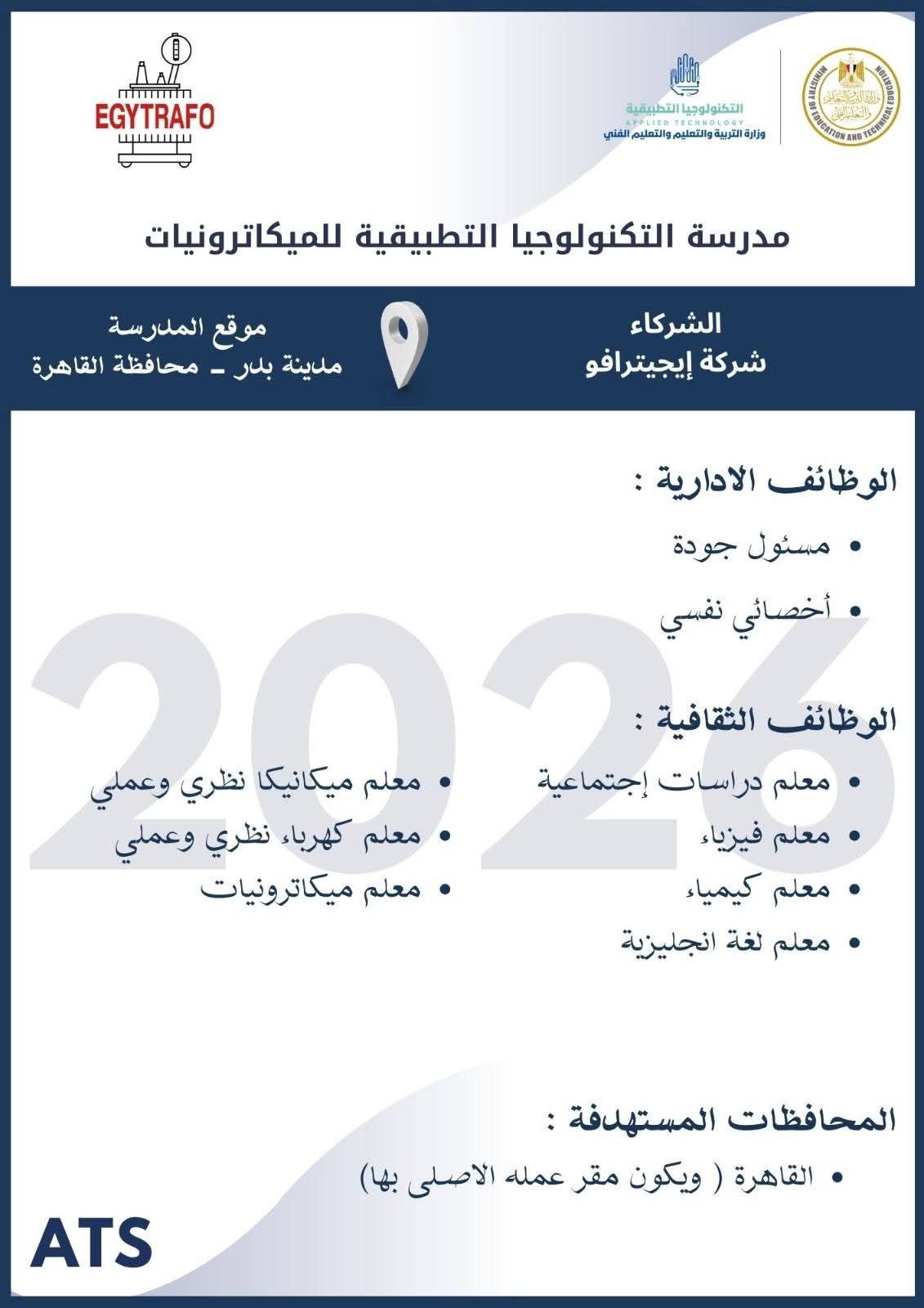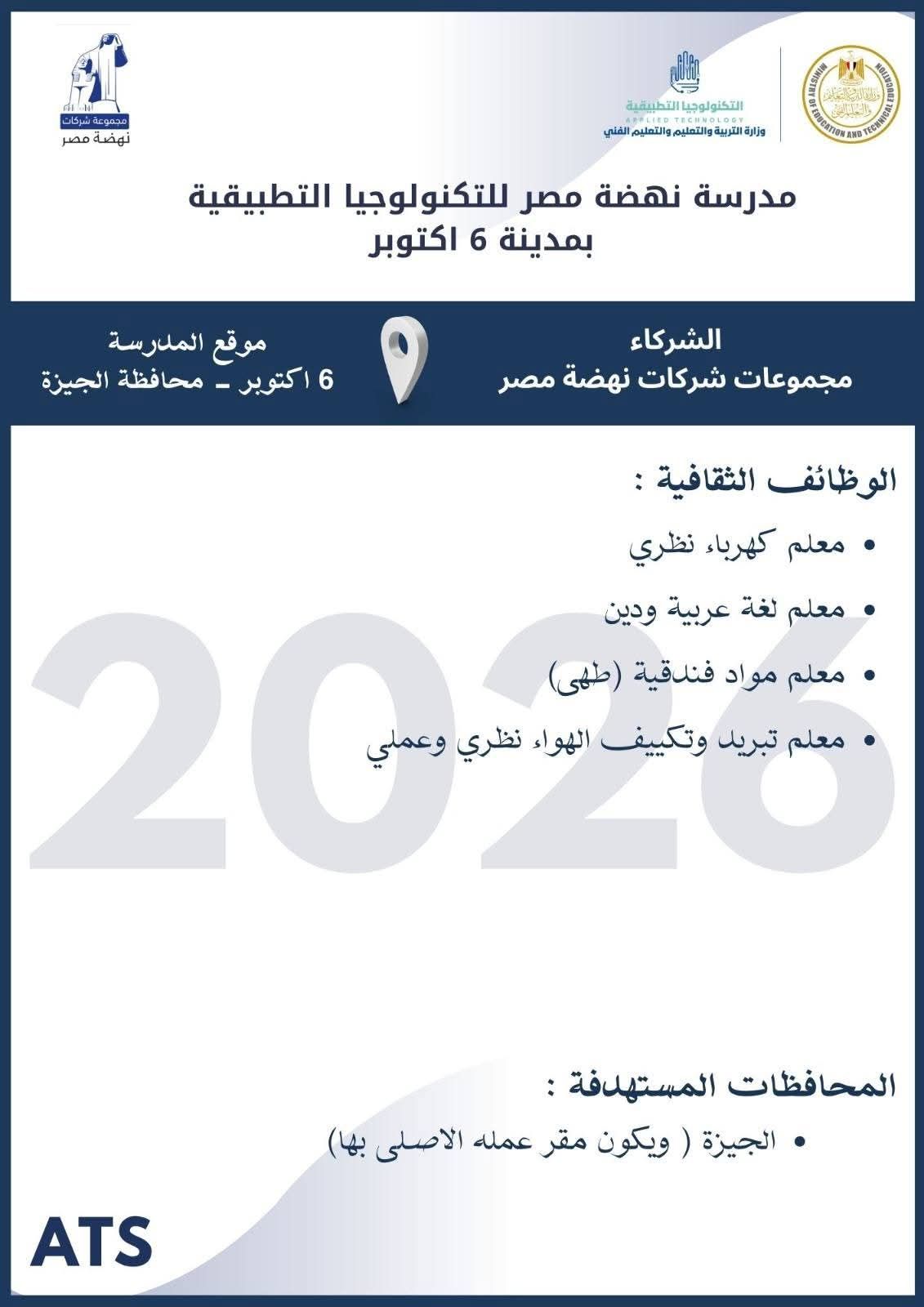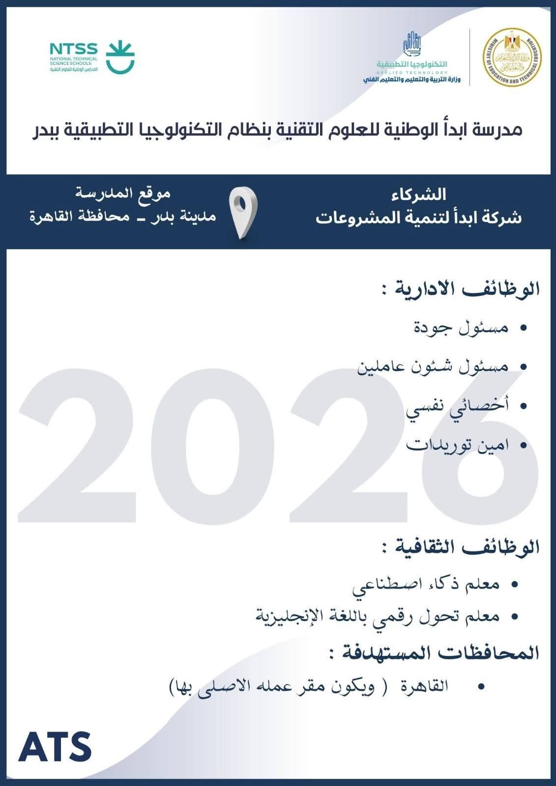الثلاثاء، 10 مارس 2026 12:02 متعلن وزارة التربية والتعليم والتعليم الفني عن فتح باب التقدم للكوادر المتميزة من المعلمين والإداريين للالتحاق بفريق عمل مدارس التكنولوجيا التطبيقية ومراكز التميز ، وذلك خلال الفترة من 8 مارس وحتى 19 مارس 2026، عبر الموقع الرسمي للوزارة على الرابط التالي: