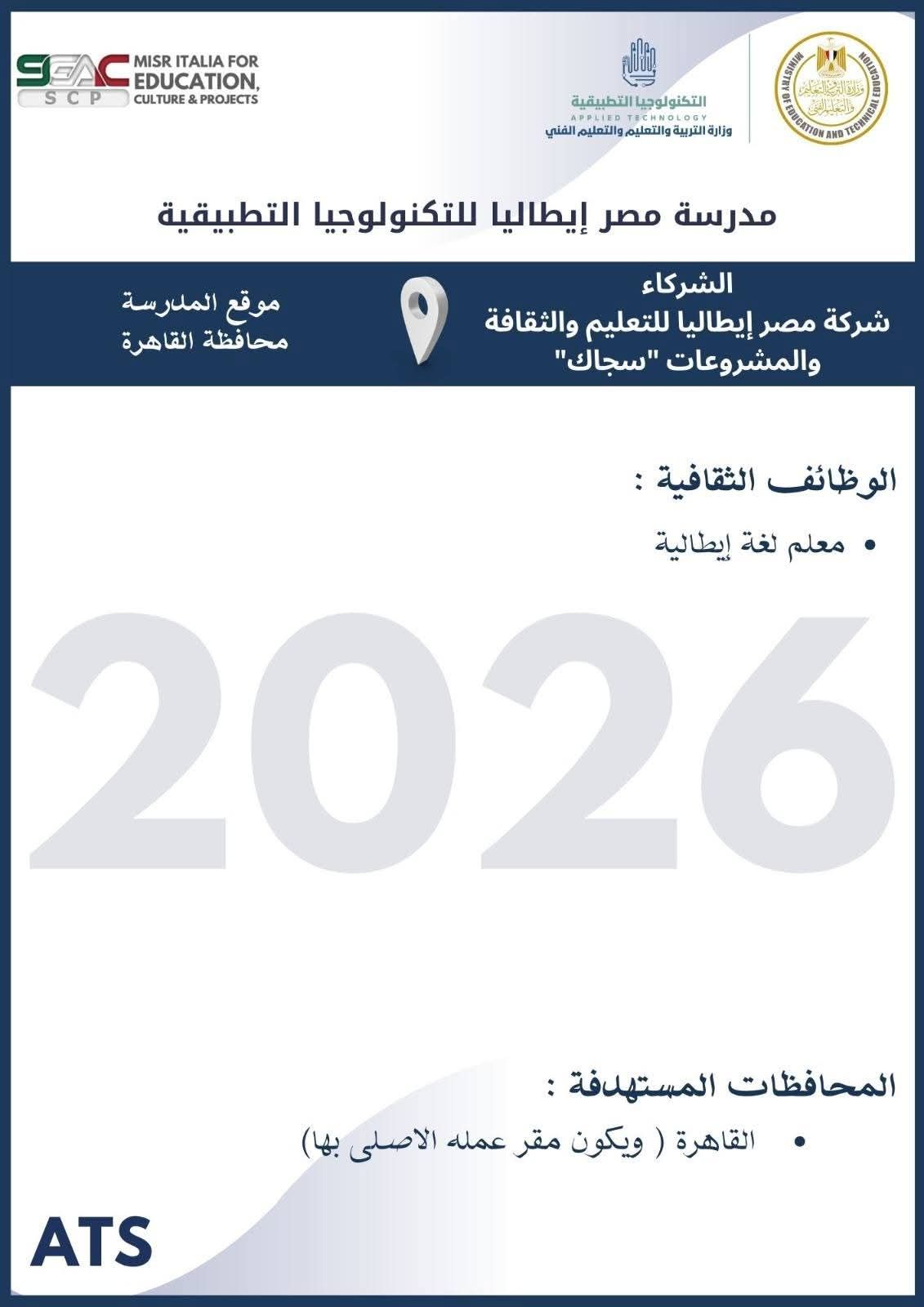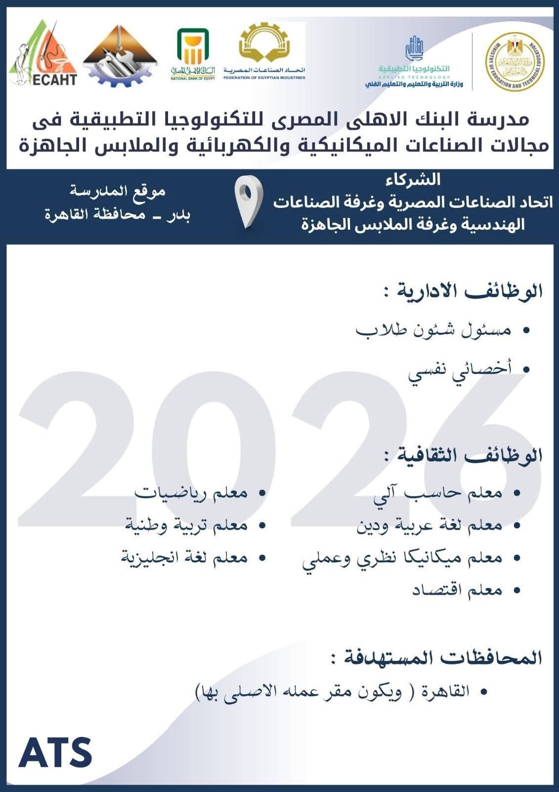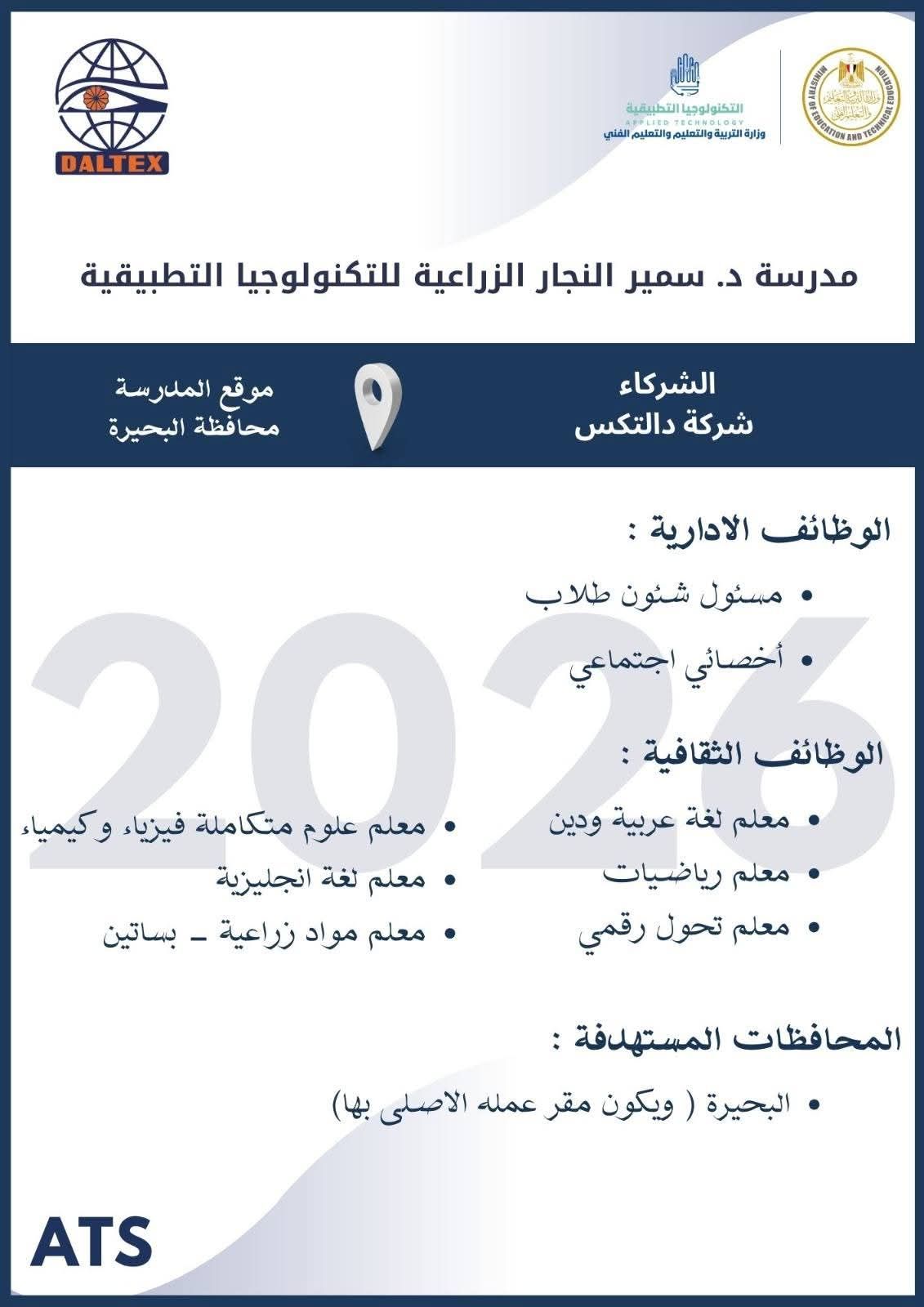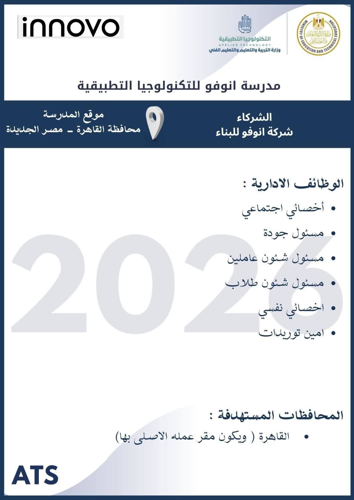 الثلاثاء، 10 مارس 2026 12:02 متعلن وزارة التربية والتعليم والتعليم الفني عن فتح باب التقدم للكوادر المتميزة من المعلمين والإداريين للالتحاق بفريق عمل مدارس التكنولوجيا التطبيقية ومراكز التميز ، وذلك خلال الفترة من 8 مارس وحتى 19 مارس 2026، عبر الموقع الرسمي للوزارة على الرابط التالي: