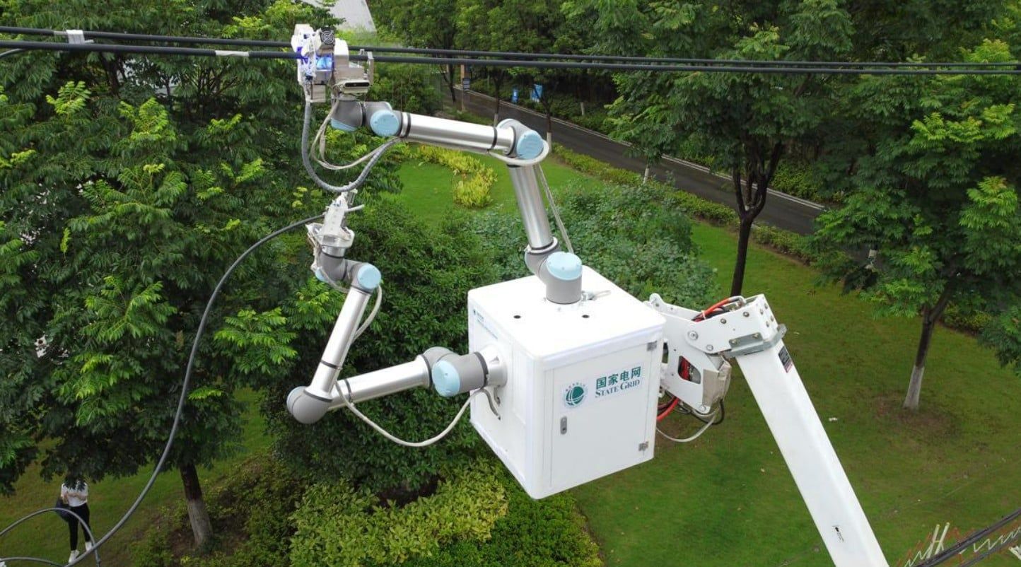 روبوت صيني يجري إصلاحات على خط كهرباء