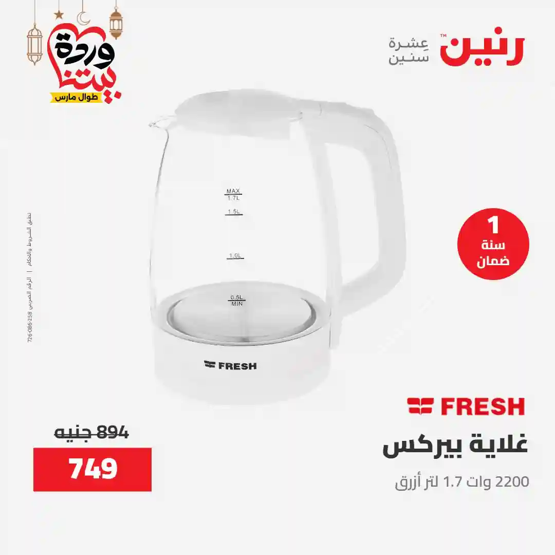 تسرى عروض رنين من يوم الخميس للسبت 12 – 13 – 14 مارس 2026 للاجهزة الكهربائية بجميع الفروع