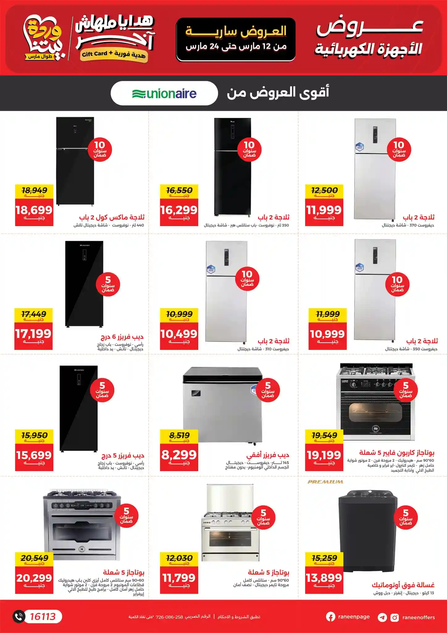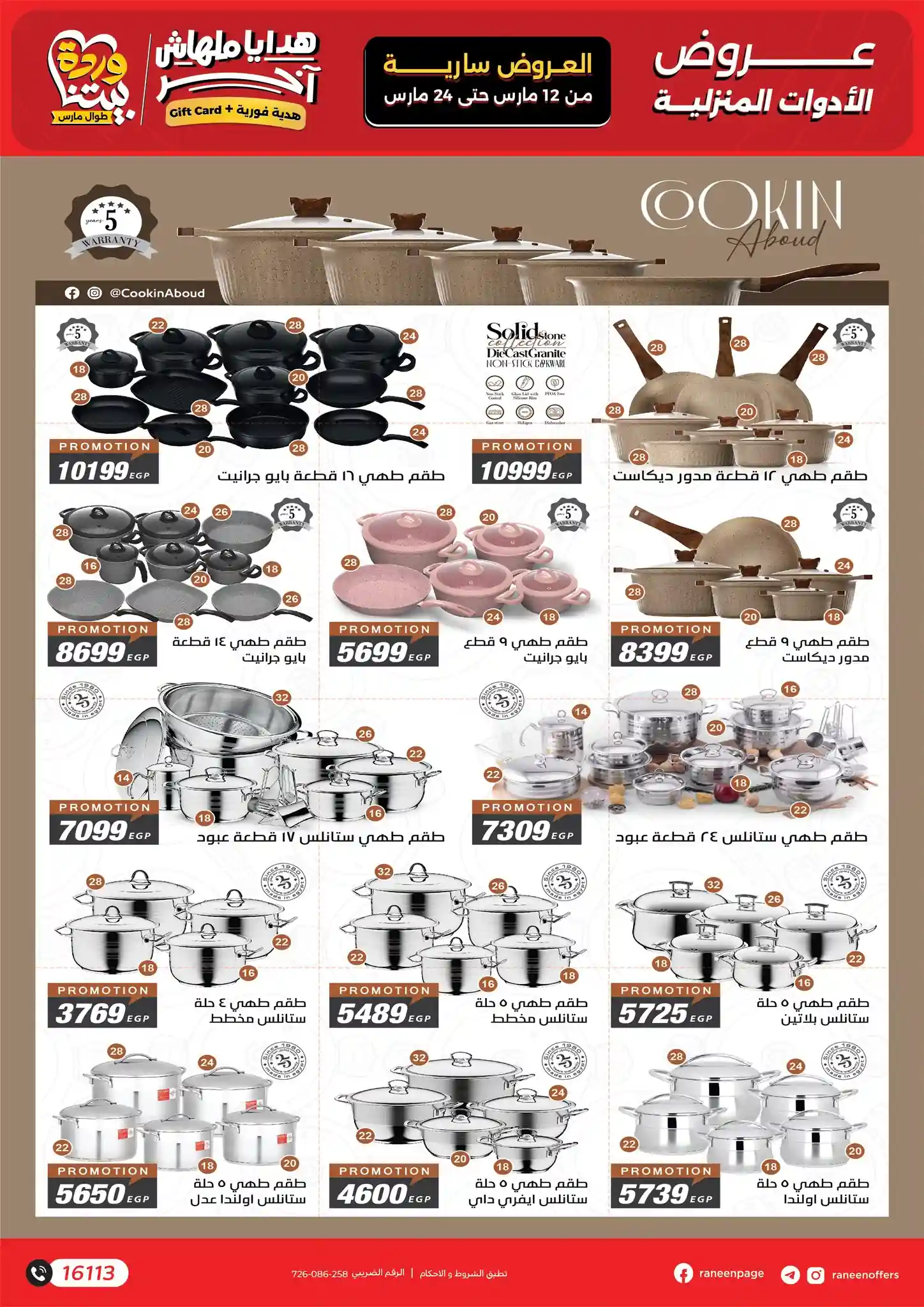 تقدم شركة رنين للادوات المنزلية عروض يومية لجميع ايام الاسبوع على الادوات المنزلية والاجهزة الكهربائية كما تقدم مهرجان عروض ال 15 جنيه الاحد من كل اسبوع ومهرجان عروض ال 99 جنيه الثلاثاء من كل اسبوع ومهرجان عروض ال 10 جنيه الاربعاء من كل اسبوع ومهرجان عروض ال 20 جنيه الجمعة والسبت من كل اسبوع واليكم احدث عروض رنين