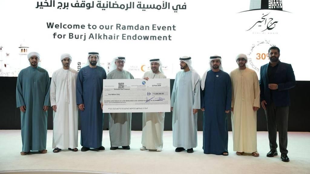 من جانبها خصصت إدارة وقف برج الخير، تبرعاً بقيمة مليوني درهم دعماً للأعمال الإنسانية، منها مليون درهم لدعم حملة وقف (أم الإمارات)، ومليوناً آخر لدعم مشاريع وبرامج هيئة الهلال الأحمر الإماراتي، في مبادرة تجسد روح التكافل المجتمعي وتعزز ثقافة الوقف والعمل الخيري في المجتمع.