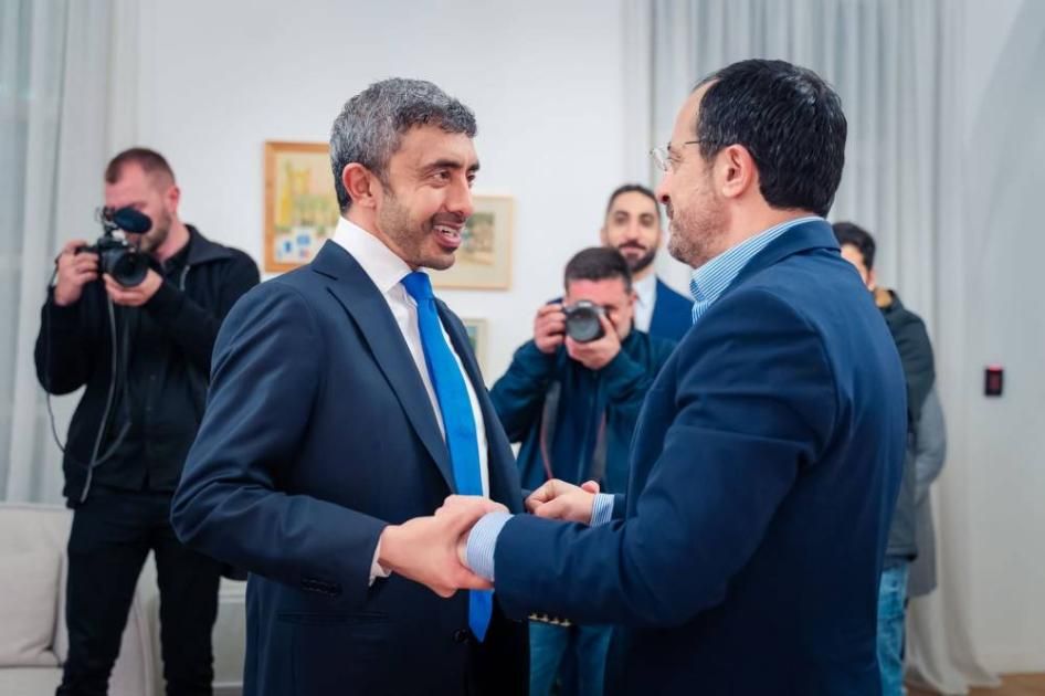 وأكَّد سموّ الشيخ عبدالله بن زايد، متانة العلاقات الاستراتيجية الإماراتية القبرصية، وما تشهده من تطور مستمر في مختلف المجالات، مشيراً إلى حرص دولة الإمارات على تعزيز شراكاتها مع جمهورية قبرص الصديقة، بما يدعم تطلعات البلدين لتحقيق التنمية الشاملة والمزيد من الازدهار الاقتصادي لشعبيهما.