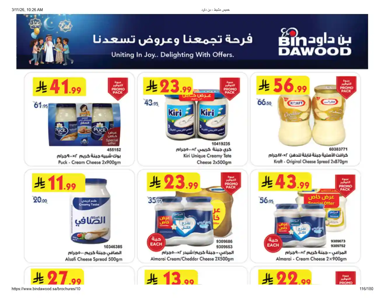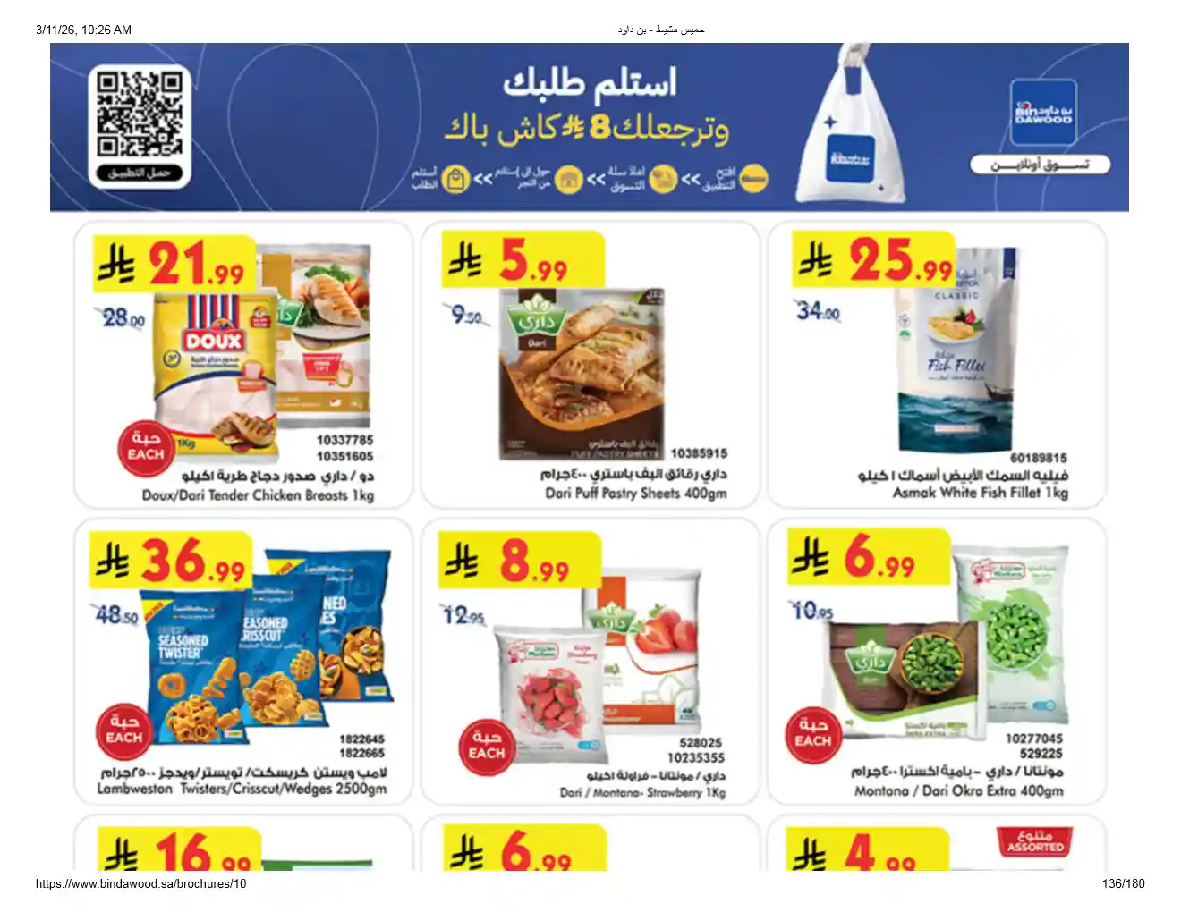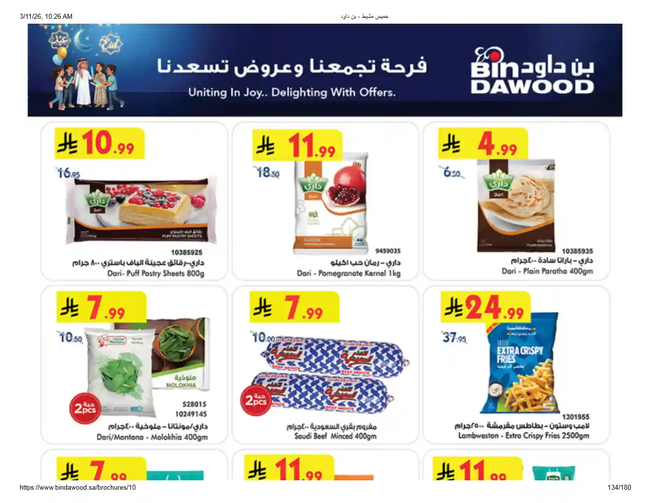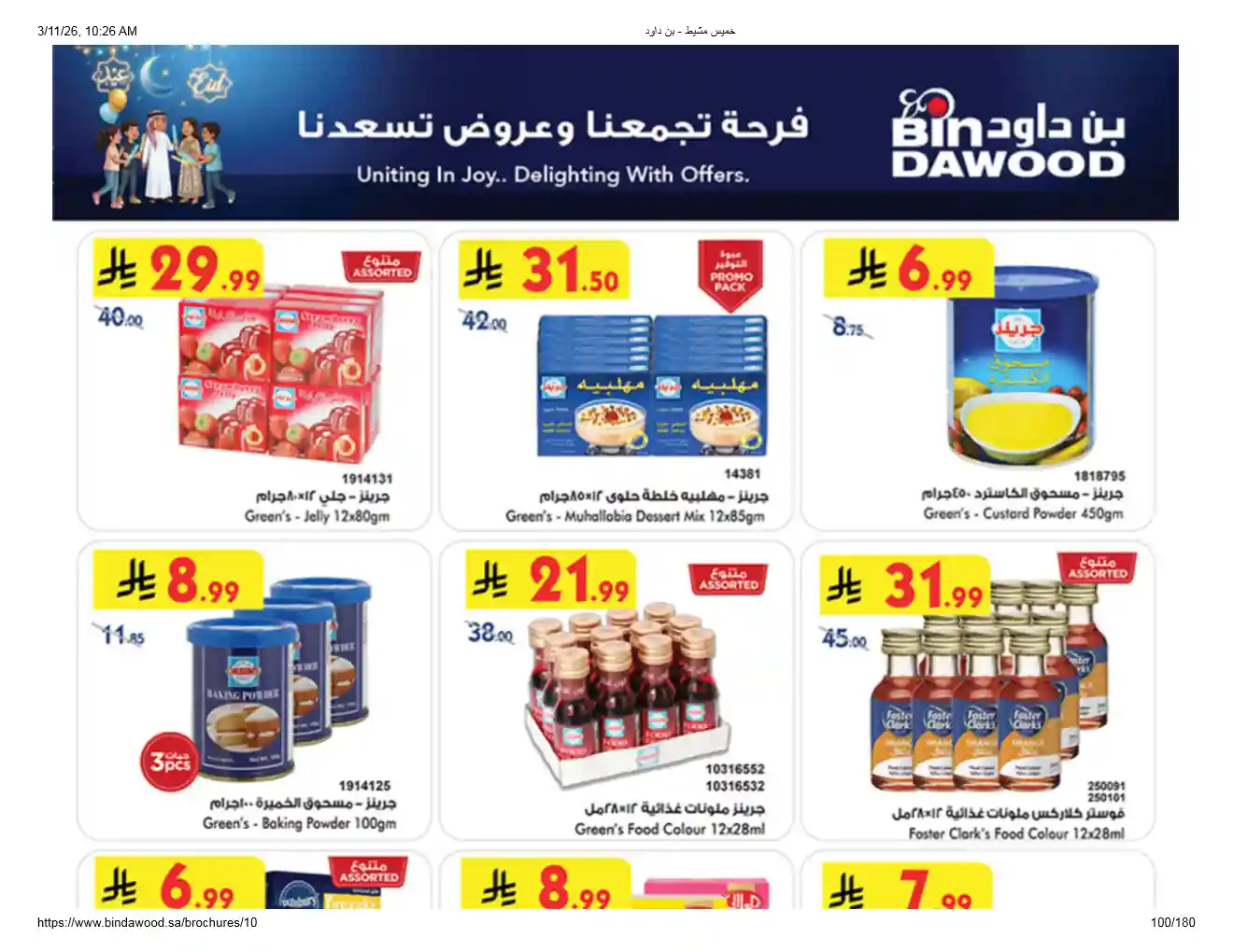 عروض نت تقدم لكم احدث عروض بن داود السعودية اليوم الجديدة فى صفحة واحدة – العروض الاسبوعية من اسواق بن داود – و ذلك من 11 مارس حتى 24 مارس 2026 فرحة العيد او حتى نفاذ الكمية من اسواق بن داود بجميع الفروع.