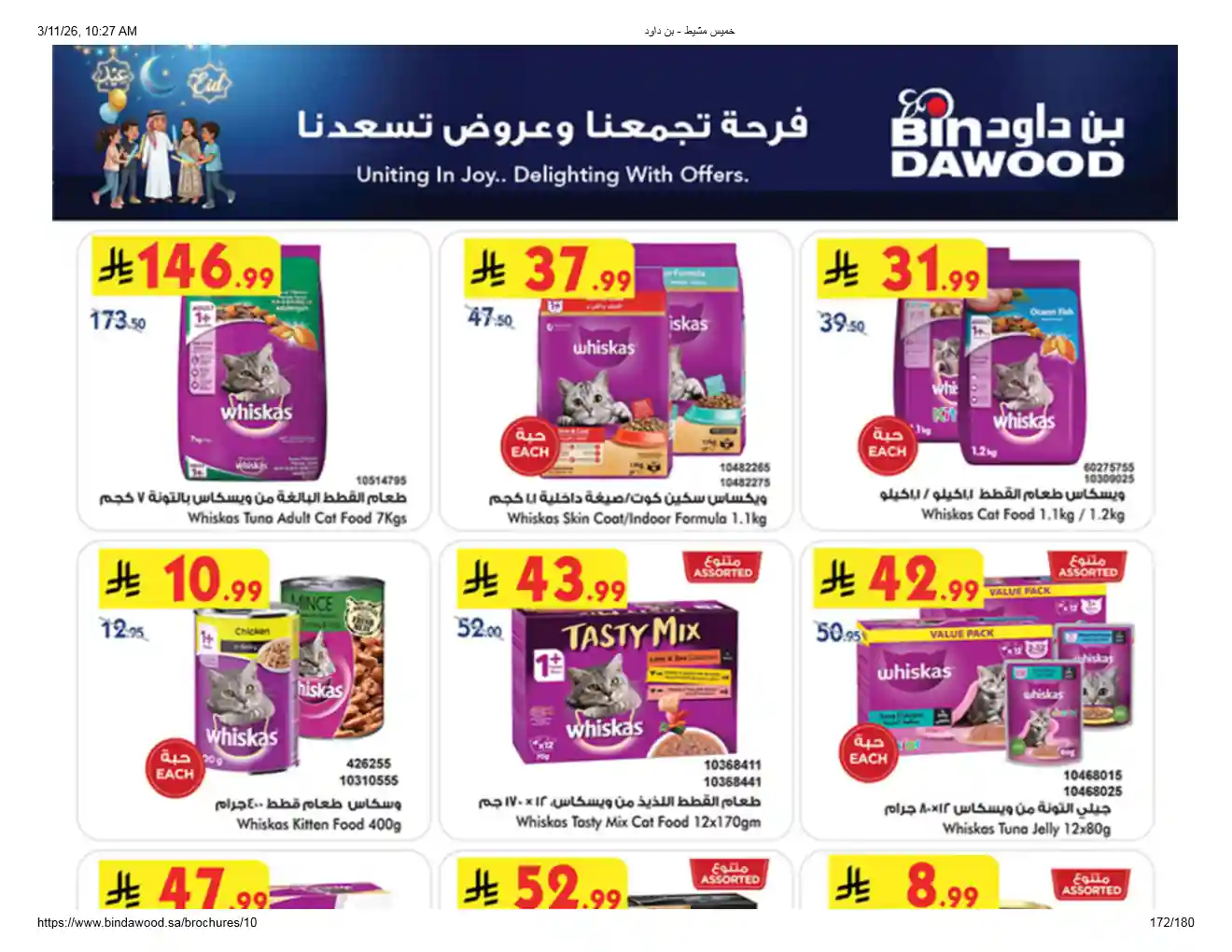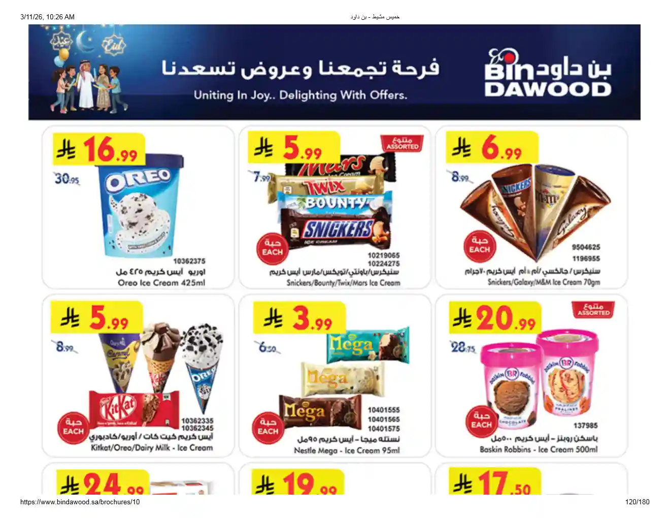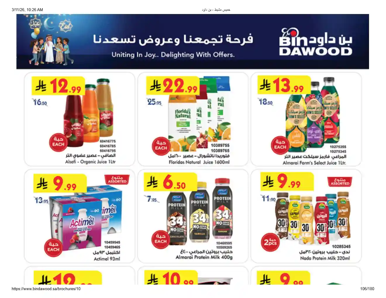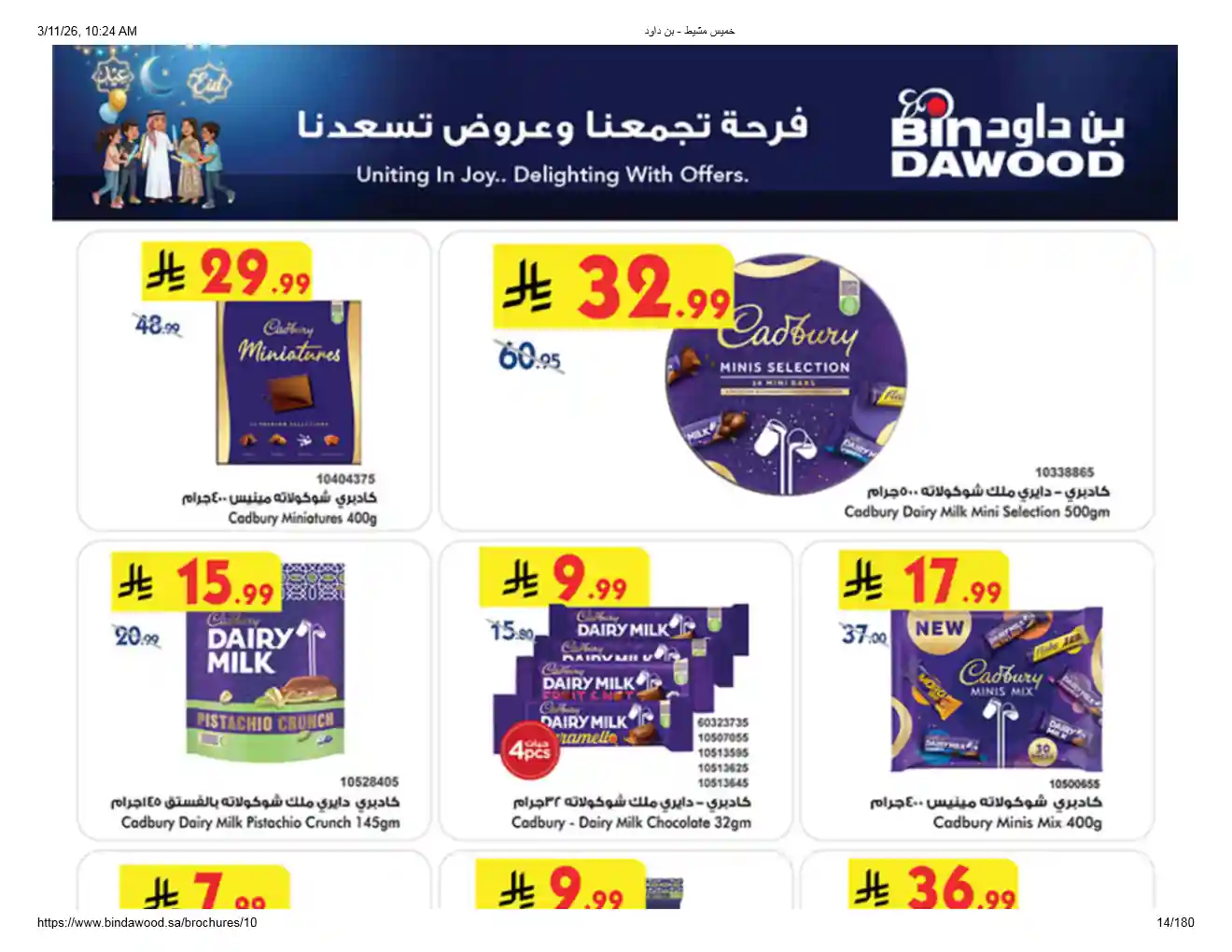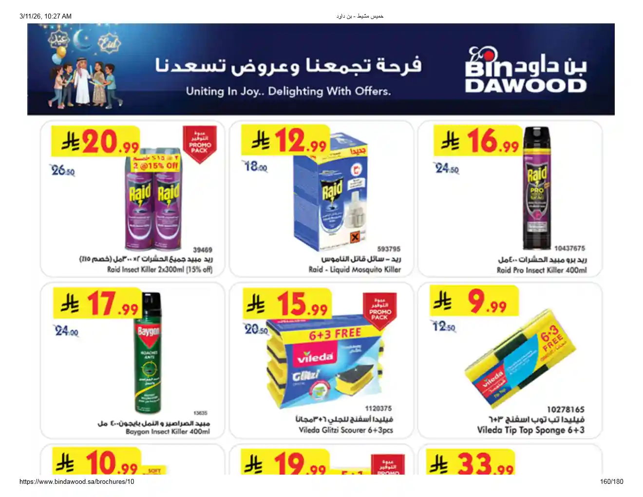 عروض نت تقدم لكم احدث عروض بن داود السعودية اليوم الجديدة فى صفحة واحدة – العروض الاسبوعية من اسواق بن داود – و ذلك من 11 مارس حتى 24 مارس 2026 فرحة العيد او حتى نفاذ الكمية من اسواق بن داود بجميع الفروع.
