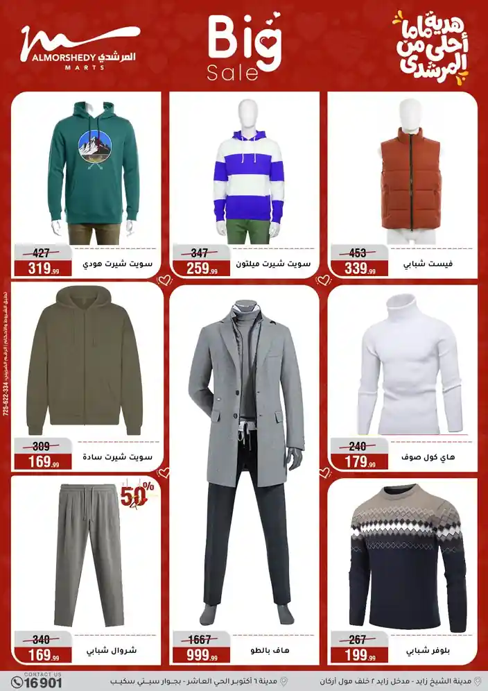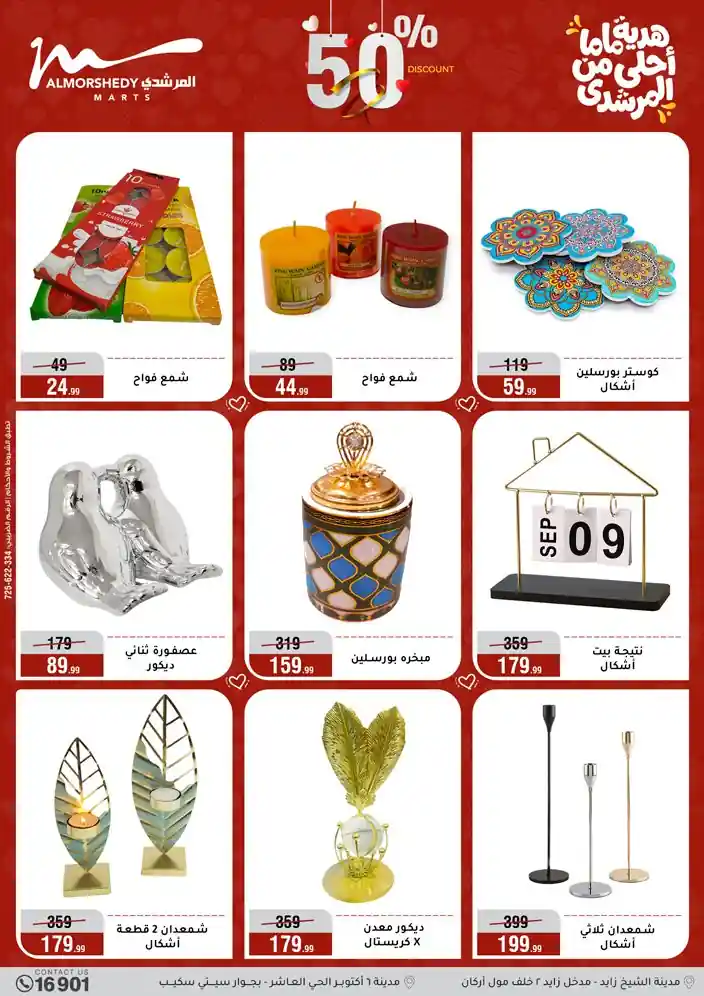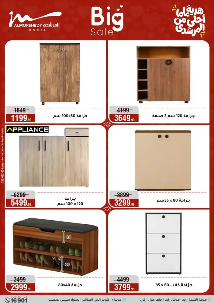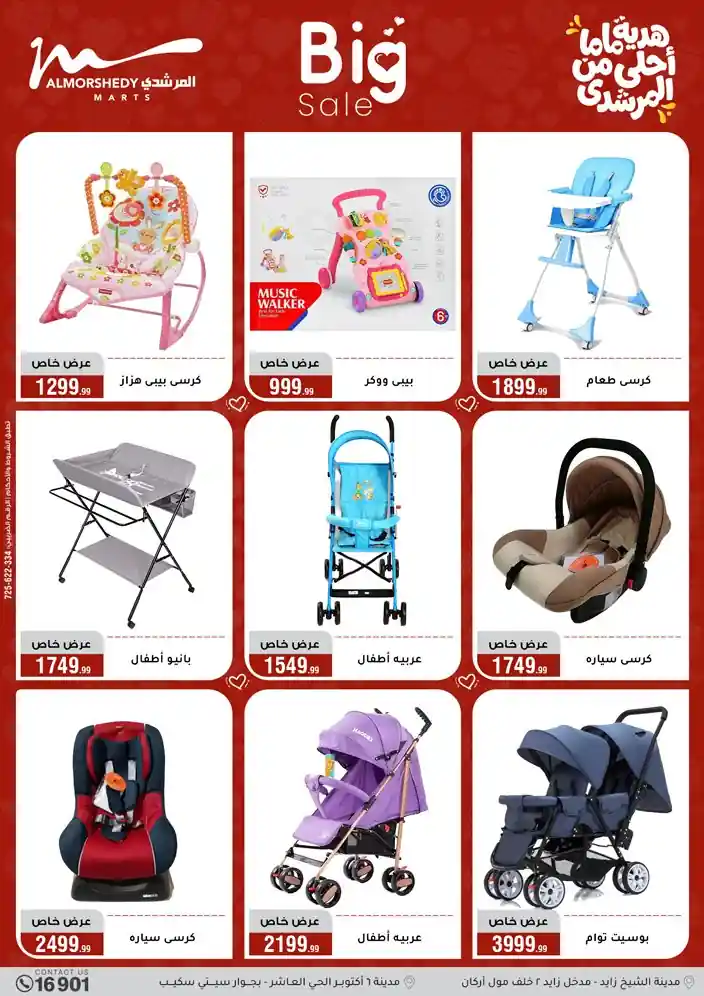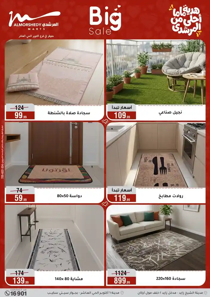 عروض جديدة من أسواق المرشدي مع اكبر مهرجان للتخفيضات في مصر خصومات حتى 70% وقسط براحتك بدون فوائد بأسعار العروض المخفضة على 12 شهر لحاملي بطاقة ائتمان CIB أو قسط براحتك مع VALU بدون مقدم حتى 60 شهر أو بدون مقدم وبدون فوائد مع نظام هاتريك وكمان النقل مجاني للقاهرة والجيزة والقليوبية على قسم الأجهزة الكهربائية والموبيليا والمراتب ( تطبق شروط المكان ) خصومات على جميع الأقسام أدوات منزلية – اجهزة كهربائية – مفروشات – موبيليا – نجف – سجاد – مراتب – ملابس رجالي وحريمي وأطفالي ومستلزمات ولعب الأطفال وجاليري وأقسام تانية كتير استمتع بالتسوق في أسواق المرشدي مع أكتر من 12 قسم و أكثر من 10,000 منتج يعني كل اللي بتحلم بيه عند المرشدي هتلاقيه