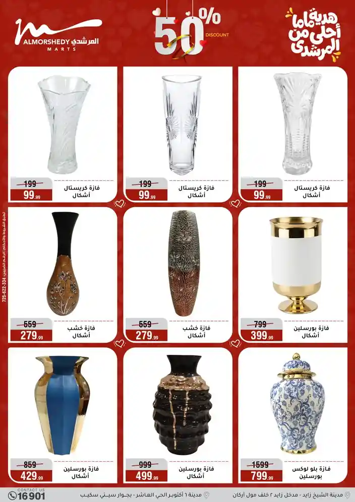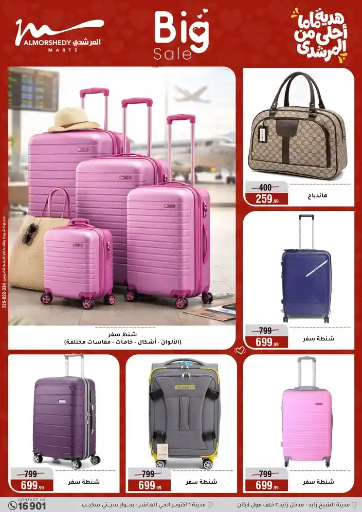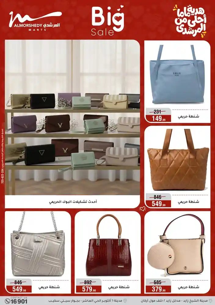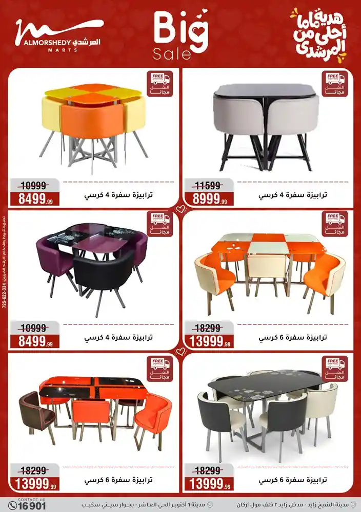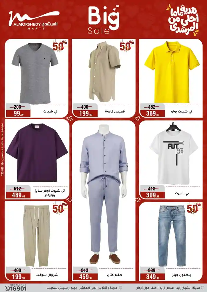 عروض جديدة من أسواق المرشدي مع اكبر مهرجان للتخفيضات في مصر خصومات حتى 70% وقسط براحتك بدون فوائد بأسعار العروض المخفضة على 12 شهر لحاملي بطاقة ائتمان CIB أو قسط براحتك مع VALU بدون مقدم حتى 60 شهر أو بدون مقدم وبدون فوائد مع نظام هاتريك وكمان النقل مجاني للقاهرة والجيزة والقليوبية على قسم الأجهزة الكهربائية والموبيليا والمراتب ( تطبق شروط المكان ) خصومات على جميع الأقسام أدوات منزلية – اجهزة كهربائية – مفروشات – موبيليا – نجف – سجاد – مراتب – ملابس رجالي وحريمي وأطفالي ومستلزمات ولعب الأطفال وجاليري وأقسام تانية كتير استمتع بالتسوق في أسواق المرشدي مع أكتر من 12 قسم و أكثر من 10,000 منتج يعني كل اللي بتحلم بيه عند المرشدي هتلاقيه