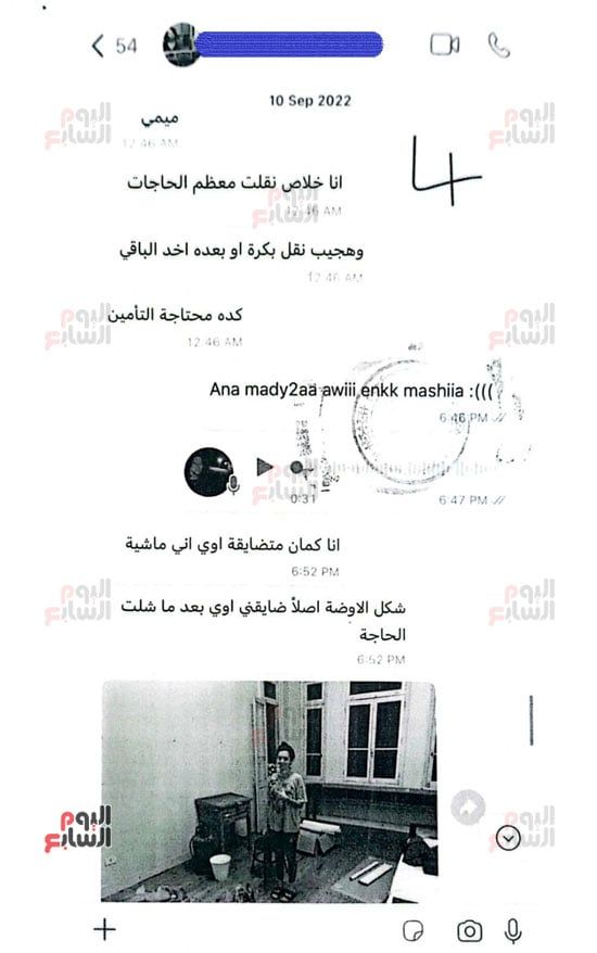 وأوضحت التحقيقات أن الفنانة أرسلت الصورة إلى إحدى المجني عليهن، لتوضح لها أن الغرفة أصبحت خالية تقريبًا من محتوياتها بعد نقل الأدوات الخاصة بها، وذلك ضمن محادثات دارت بين الطرفين قبل نشوب الخلافات التي انتهت بتحرير محضر بالواقعة.