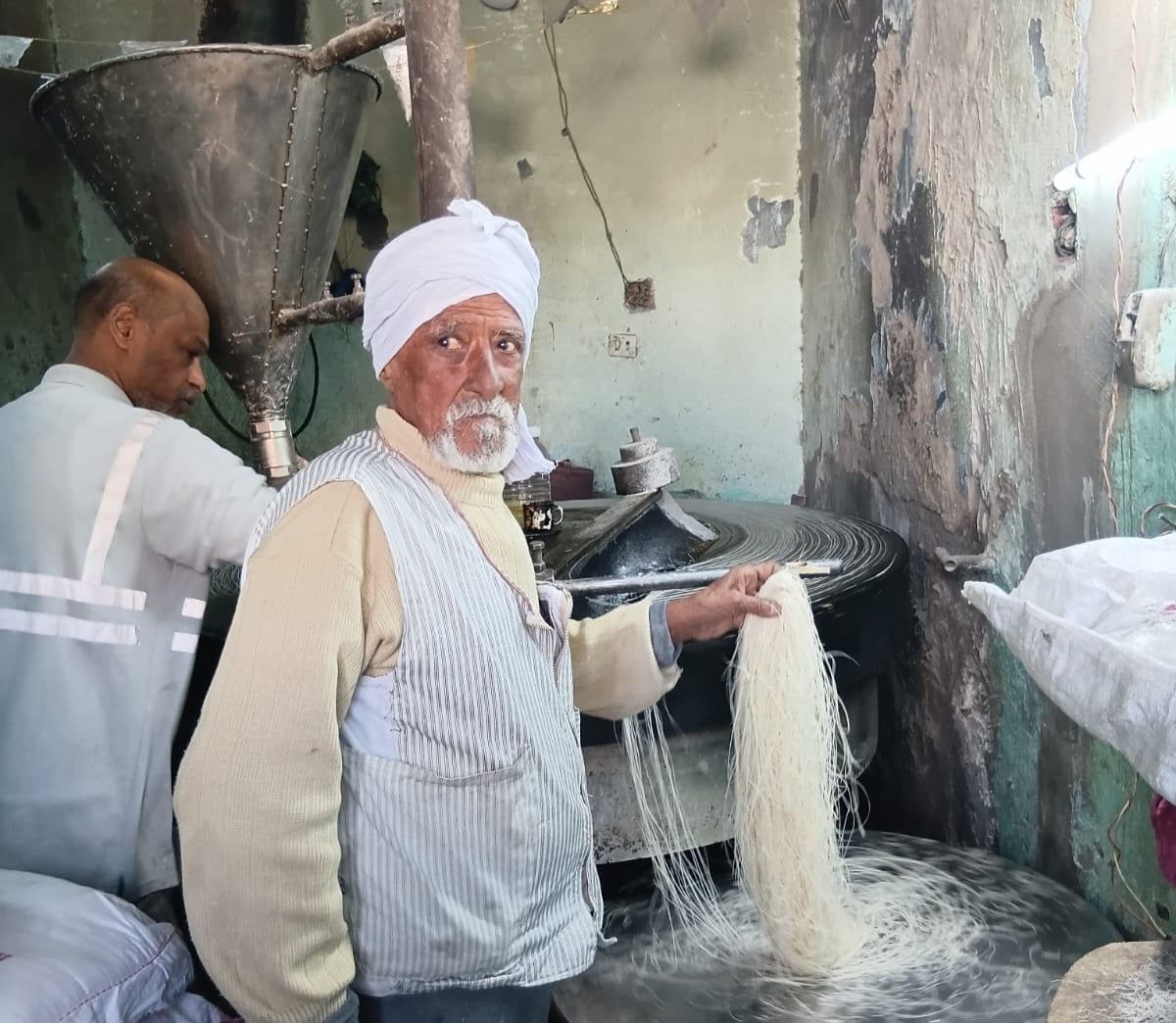 تجاعيد وجهه تحكي قصة سنوات من العمل الجاد قضاها ذلك الرجل الذي قارب عمره على الثمانين عاما بين حرارة الفرن وشعيرات الكنافة، ليصبح علامة مميزة في محله يعرفه الصغير والكبير ويذهب إليه لشرائها على مدار العام وليس في شهر رمضان فقط، لتكون مصدر رزق له يعينه على متطلبات الحياة لاسيما بعد تقدمه في العمر.